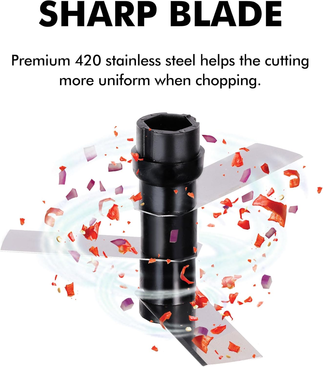 Chopping in A Breeze : The three blades of the vegetable chopper are distributed at different heights and directions for more efficient and evenly cutting, chopping in seconds. Just a few simple pulls to finish chopping vegetables with ease