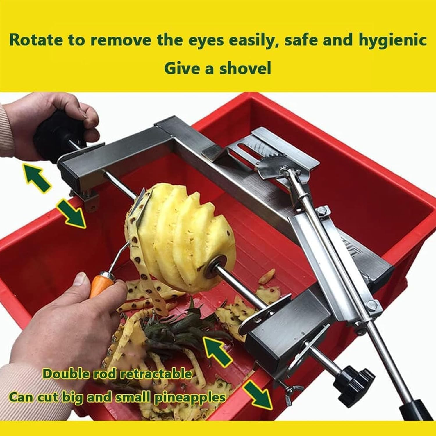 The frame is fixed and locked, which is safer and stronger. Our pineapple peeler is made of food-grade stainless steel and easy-to-clean plastic handle.