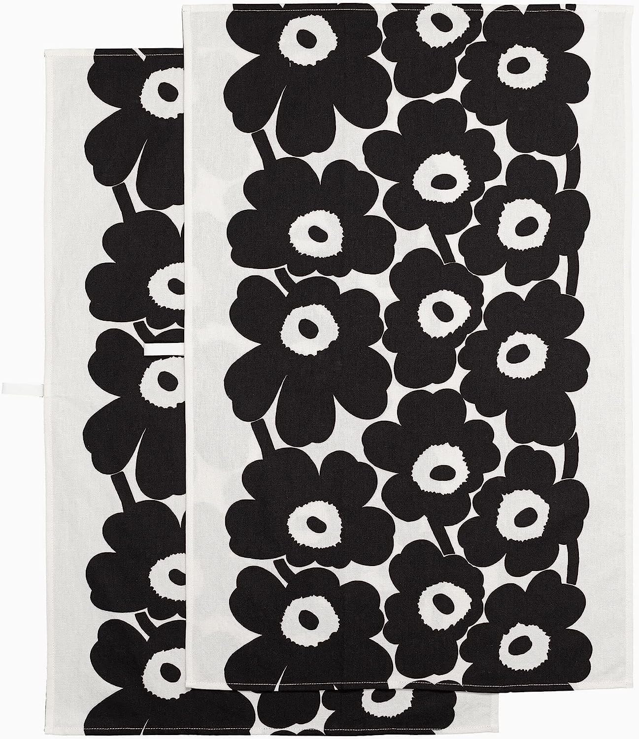MARIMEKKO Unikko Cotton Linen Kitchen Towel Set of 2 — Refine Your Kitchen Décor with Our Floral Patterned Towels — Stylish and Functional Black and White Kitchen Towels (28 in x 19 in Each)