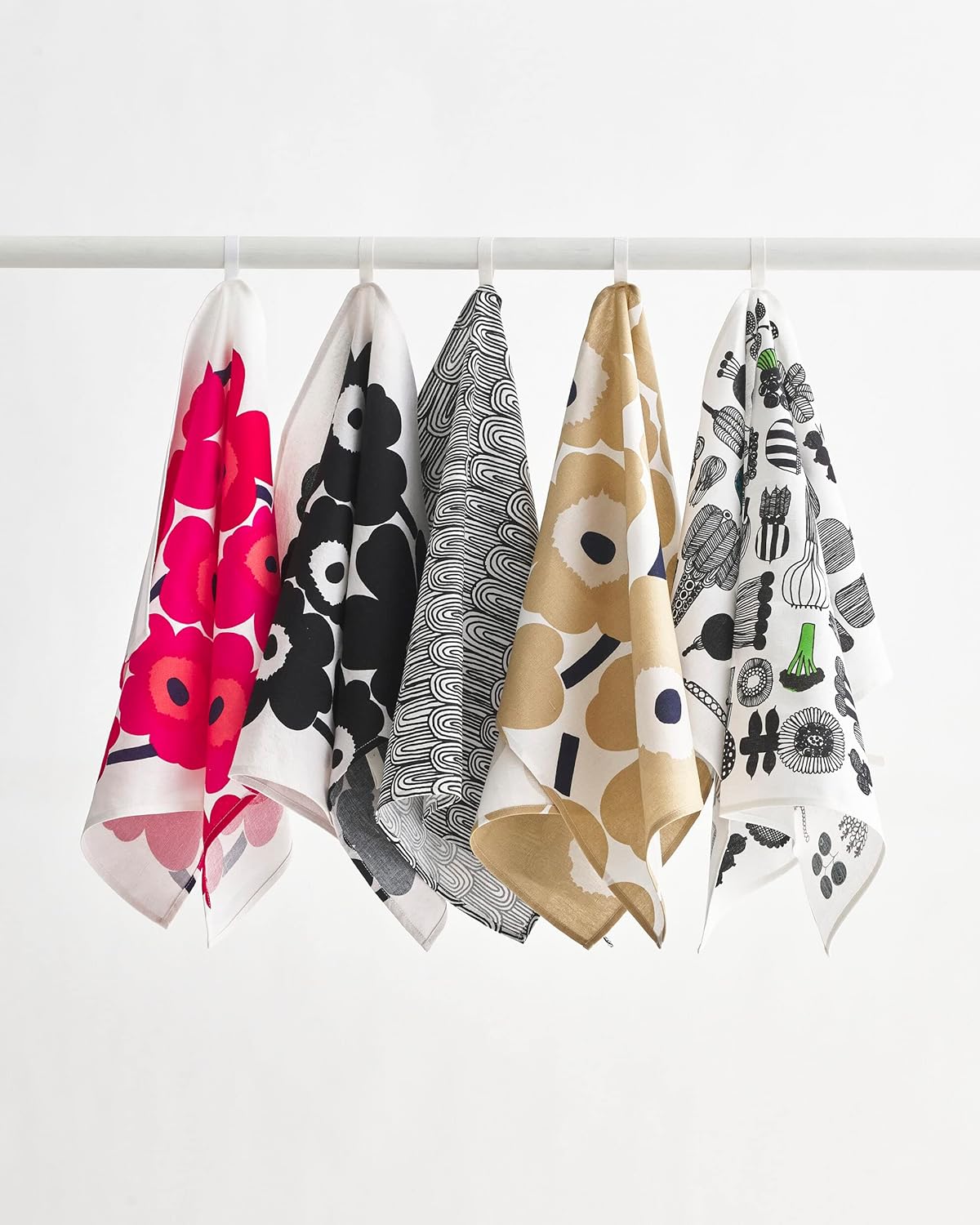 Marimekko in Patterns: Elevate your kitchen routine with the sumptuous touch of these Marimekko’s kitchen washcloths, featuring quality materials and exquisite patterns; personalize with mix-and-match options for an eclectic kitchen set, or opt for a cohesive, timeless collection