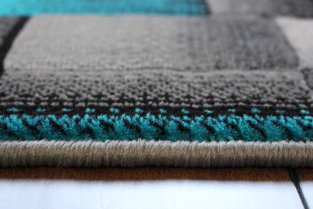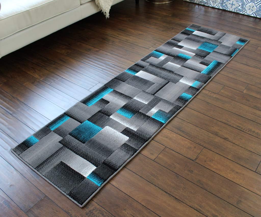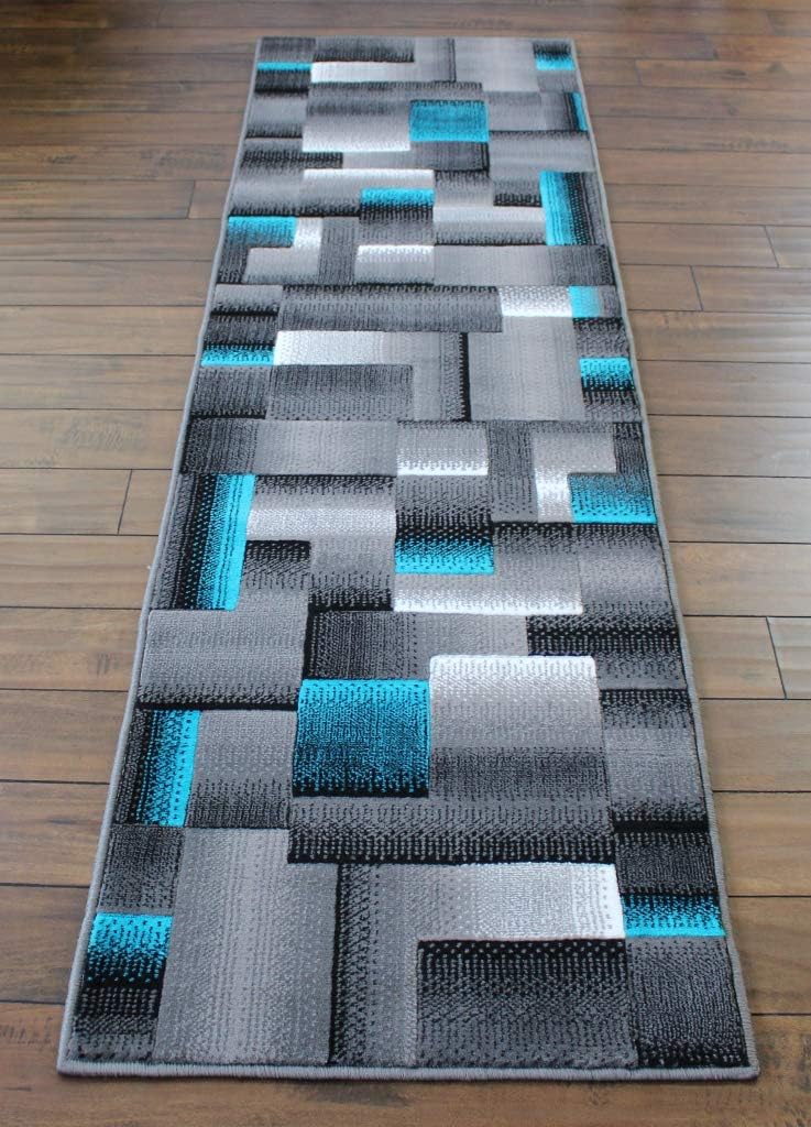 Masada Rugs, Modern Contemporary Area Rug, Turquoise Grey Black (2 Feet X 7 Feet) Runner