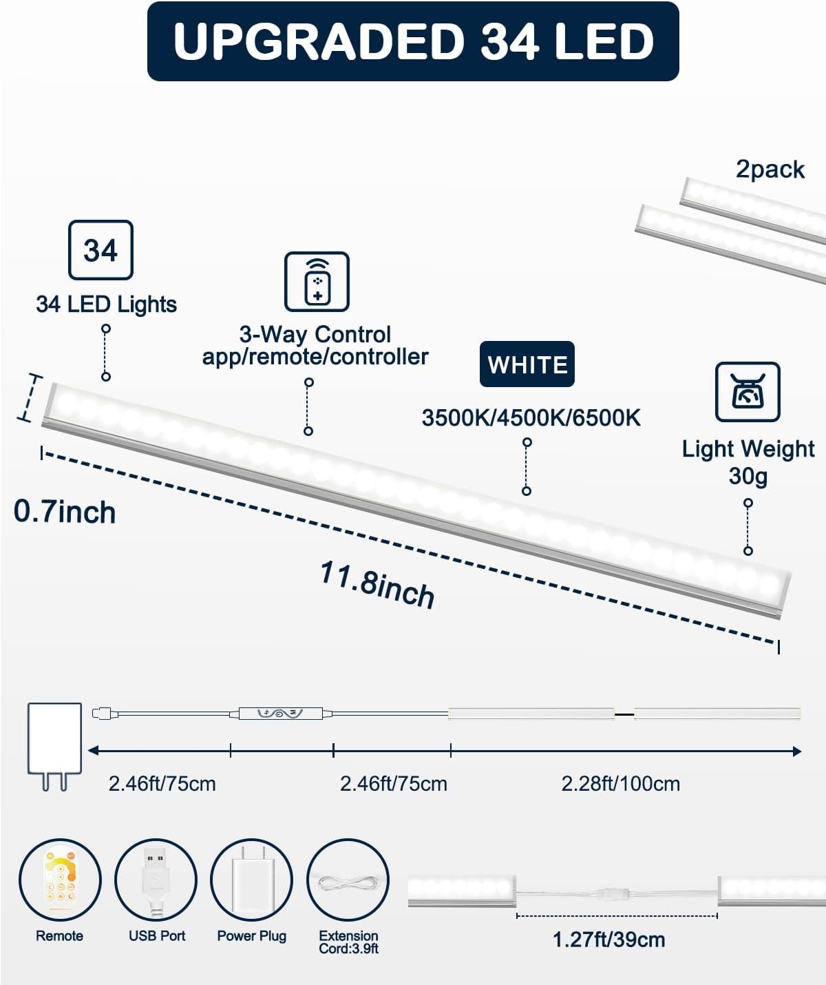 ▶ Super Bright & Ultra Thin – These 2 led cabinet light, Each led light make from high quality 34 LED beads, which make a bright and soft daylight white lighting for kitchen cabinet. Each 12inch light bar s 0.25inch ultra thin, thin enough to hide perfectly under your cabinets.