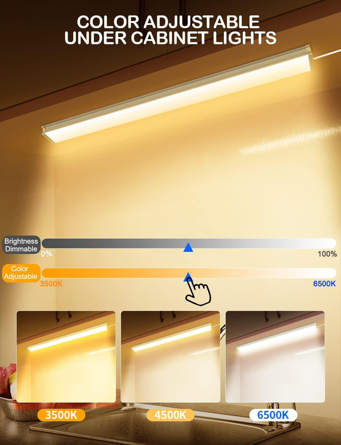▶ Dimmable Cabinet Lights – MATICOD under cabinet lights, the colors can be freely adjusted from 3500K-6500K,which will meet the different lighting needs. Brightness can also be freely adjusted, with at least 10 different brightness options available for selection.