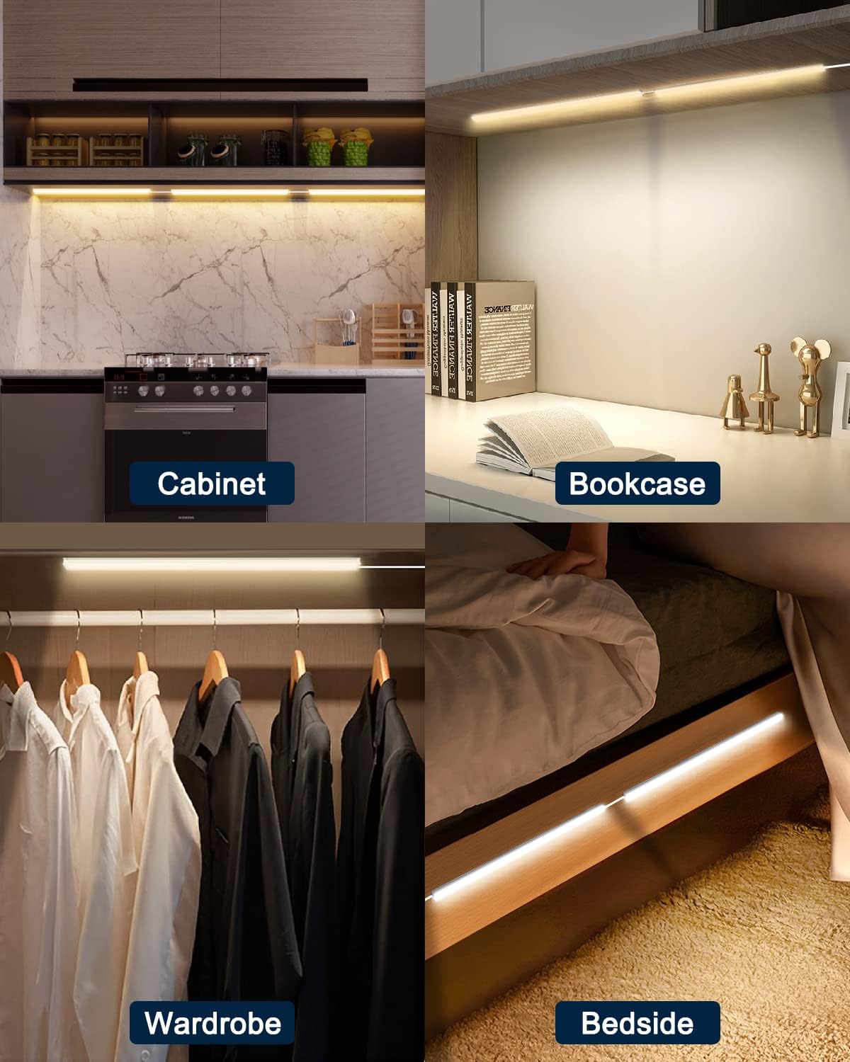 Widely Application – MATICOD under cabinet lights perfect for under cabinet lighting, kitchen lighting, counter lighting and so much more. Install it in anywhere, such as cupboard, bookcase, stairs, steps, corner, wardrobe, stairway, showcase, bookshelf, picture frame,vanity mirror, living room, storage, wardrobes, attic.