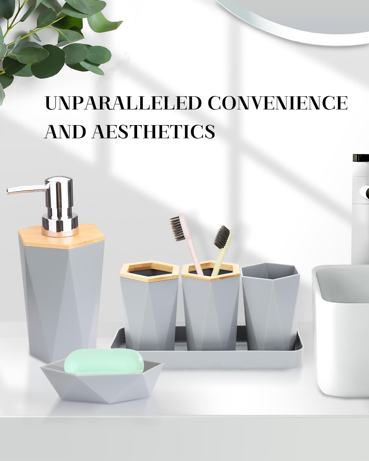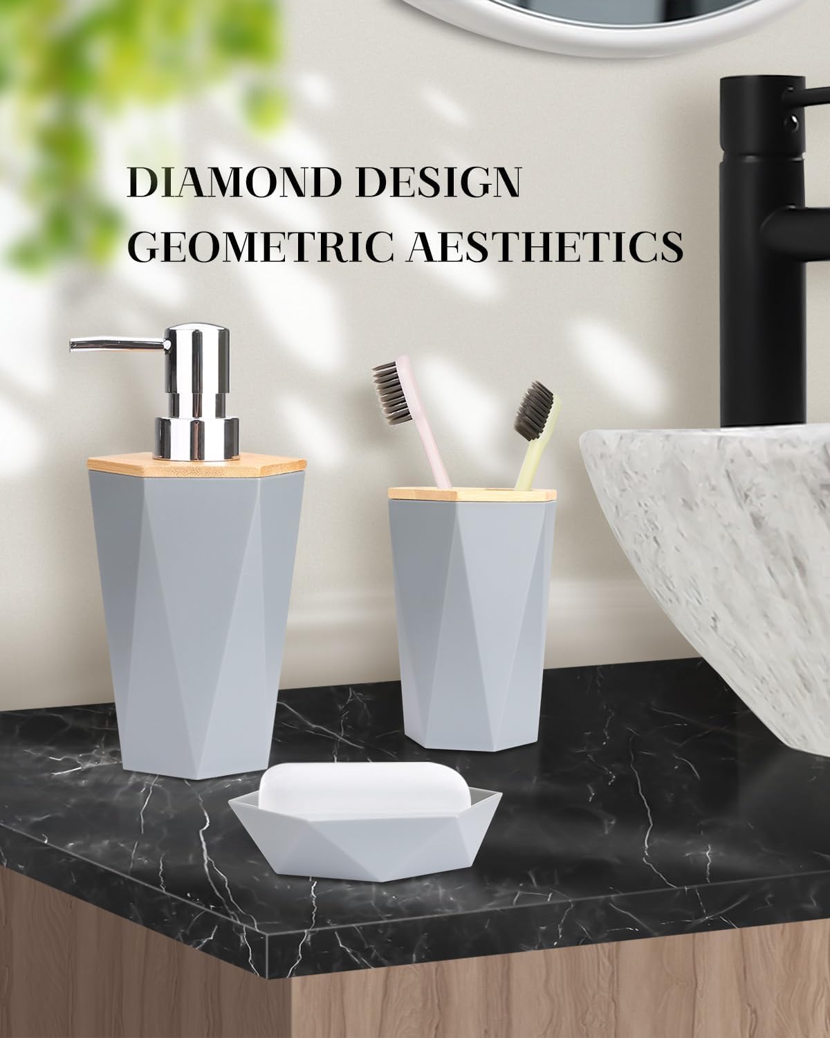 【Gift Ideas】: Whether it’s your home bathroom, dorm room, hotel or RV, the modern design of this bathroom accessories set is easy to match, making it an ideal gift for housewarming, new homes and the holidays