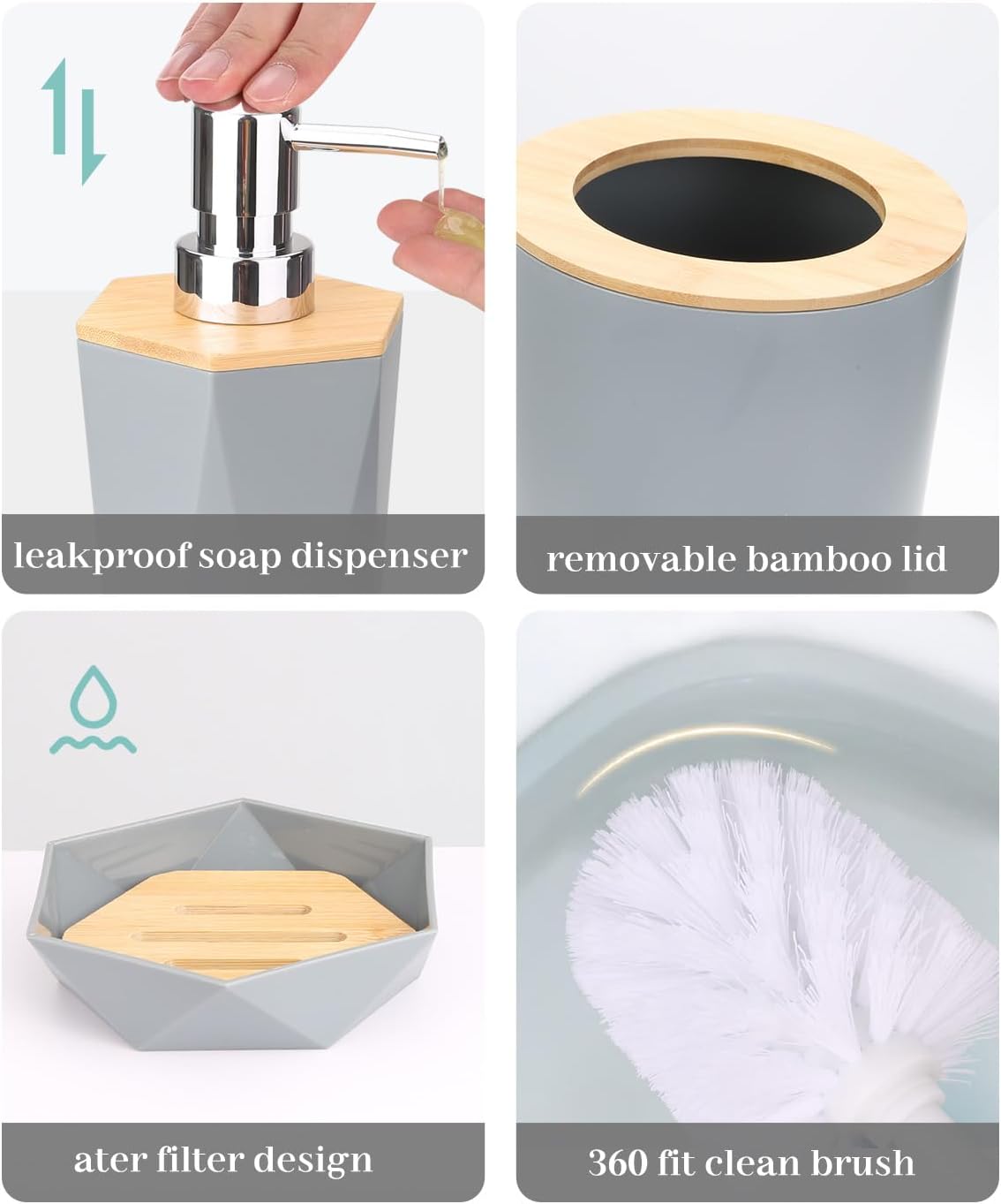 【Durable and Drop-Proof】: Crafted from high-quality, easy-to-clean plastic, our bamboo bathroom accessories come with stylish bamboo lids that help keep your countertops neat and tidy while enhancing your bathroom’s aesthetic