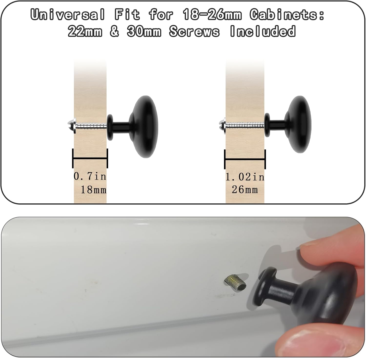 Universal Size & Easy Installation: 1.14″ diameter (29mm) fits most cabinets and drawers. Includes 22mm & 30mm screws for boards up to 1.18″ thick—no tools needed!