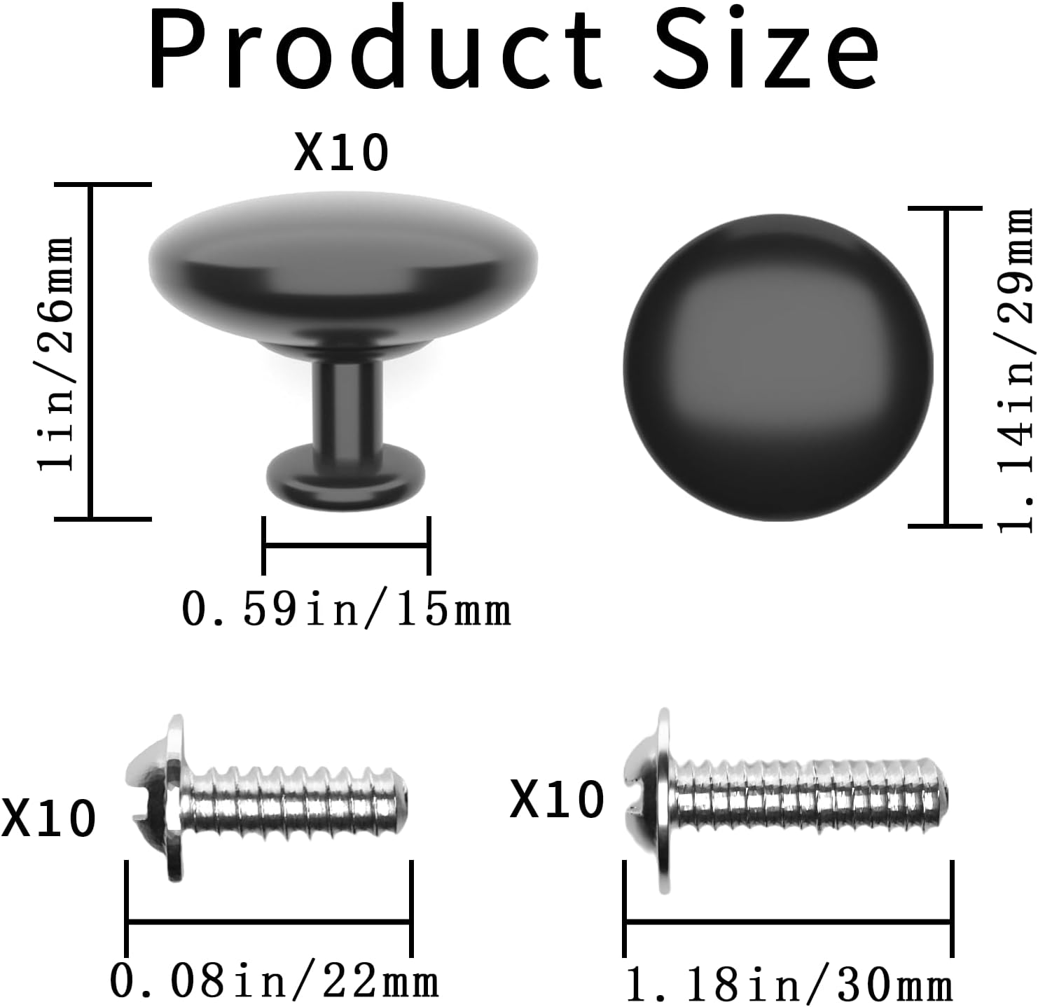 Upgrade the style of your cabinets and furniture with our Matte Black Kitchen Cabinet Knobs. These knobs are made from durable aluminum alloy, offering both a sleek appearance and long-lasting functionality. Measuring 1.14 inches (29mm) in diameter and 0.59 inches (15mm) at the base, these knobs are perfect for a wide range of applications, from kitchen cabinets and bathroom drawers to furniture and dressers.