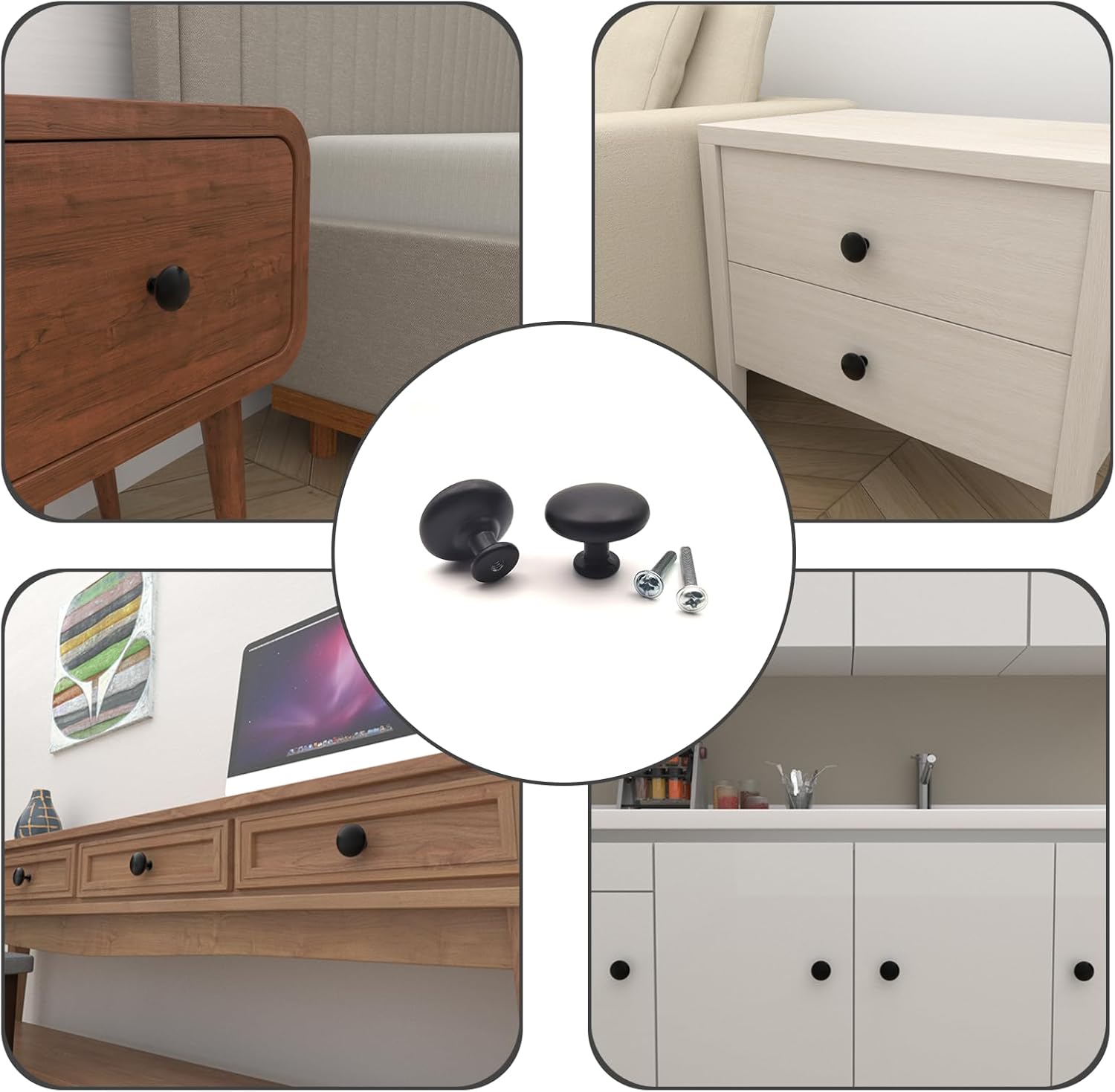 The matte black finish provides a modern, sophisticated look that complements various décor styles, including farmhouse, modern, and traditional themes. Easy to install, these knobs come with screws in two sizes to fit cabinets or drawers with a thickness between 0.59 to 1.18 inches (15-30mm).
