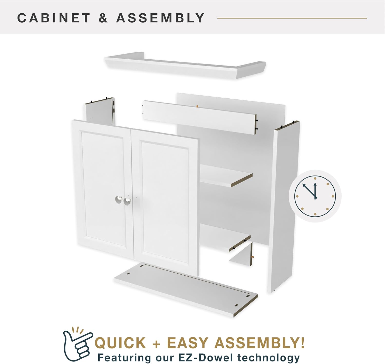 QUICK & EASY ASSEMBLY: Featuring a patented EZ dowel system, this cabinet is designed for hassle-free assembly. With step-by-step instructions & an included assembly video, you can set it up effortlessly in no time. Perfect for renters & homeowners looking for convenience!