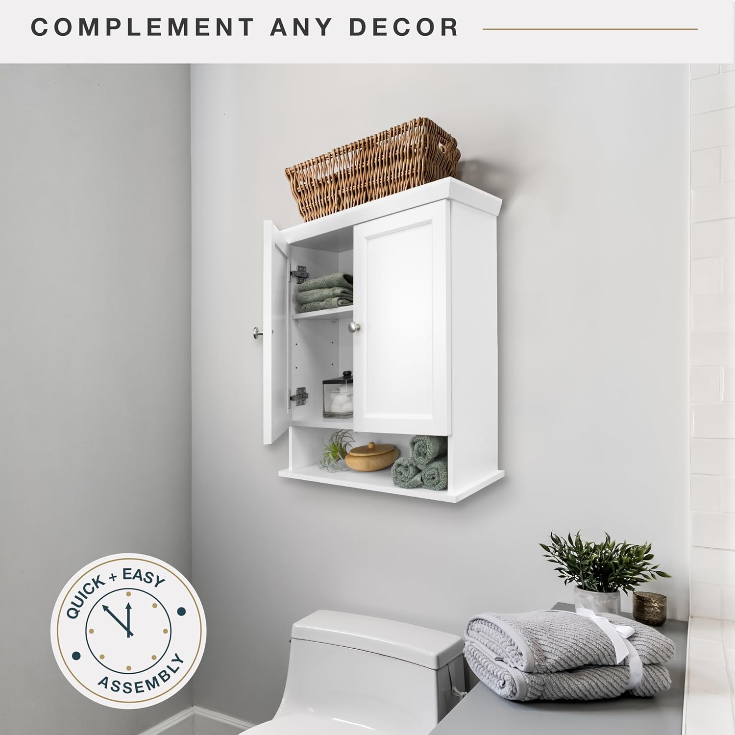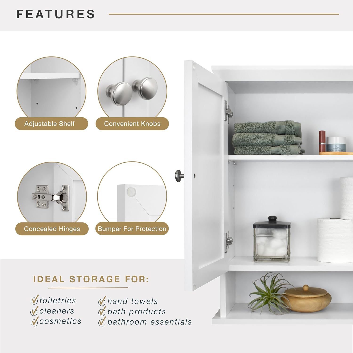 QUALITY CONSTRUCTION: Crafted from high-quality engineered wood, this MCS over-the-toilet storage cabinet features a classic raised panel door design & a crisp white painted finish. Built for lasting durability & timeless versatility, it complements any bathroom décor effortlessly.