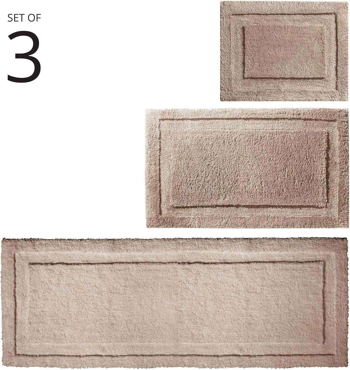ULTRA ABSORBENT: Microfiber absorbs water and dries quickly; The quick-dry fibers keep this rug looking and feeling great, even with repeated use; Floors stay dry, so no more worries about slippery bathroom floors; The extra-long runner-style rug is great for double sink vanities, in front of tubs, in hallways and entryways; All three rugs are perfect for the guest bathroom, powder room, master baths, kid’s bathroom and more; Includes a long runner, standard accent rug, and short accent rug