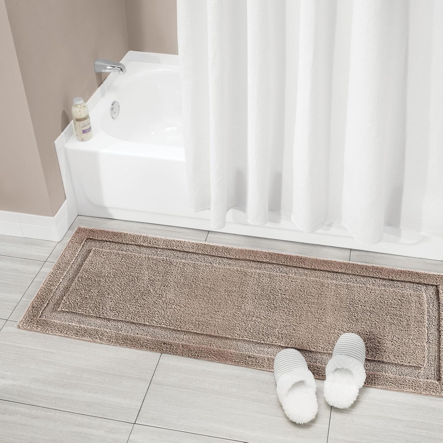 ALL-AROUND COMFORT: The plush cut pile of these hotel-quality mats is made of super soft and absorbent microfiber yarns to give you a comfortable and warm place to stand when brushing your teeth or applying makeup; Use in front of bathroom counters, sinks, vanities, showers or bathtubs; Use these beautiful and comfortable rugs throughout the home – try in the kitchen, laundry/utility room, mudroom or entryway