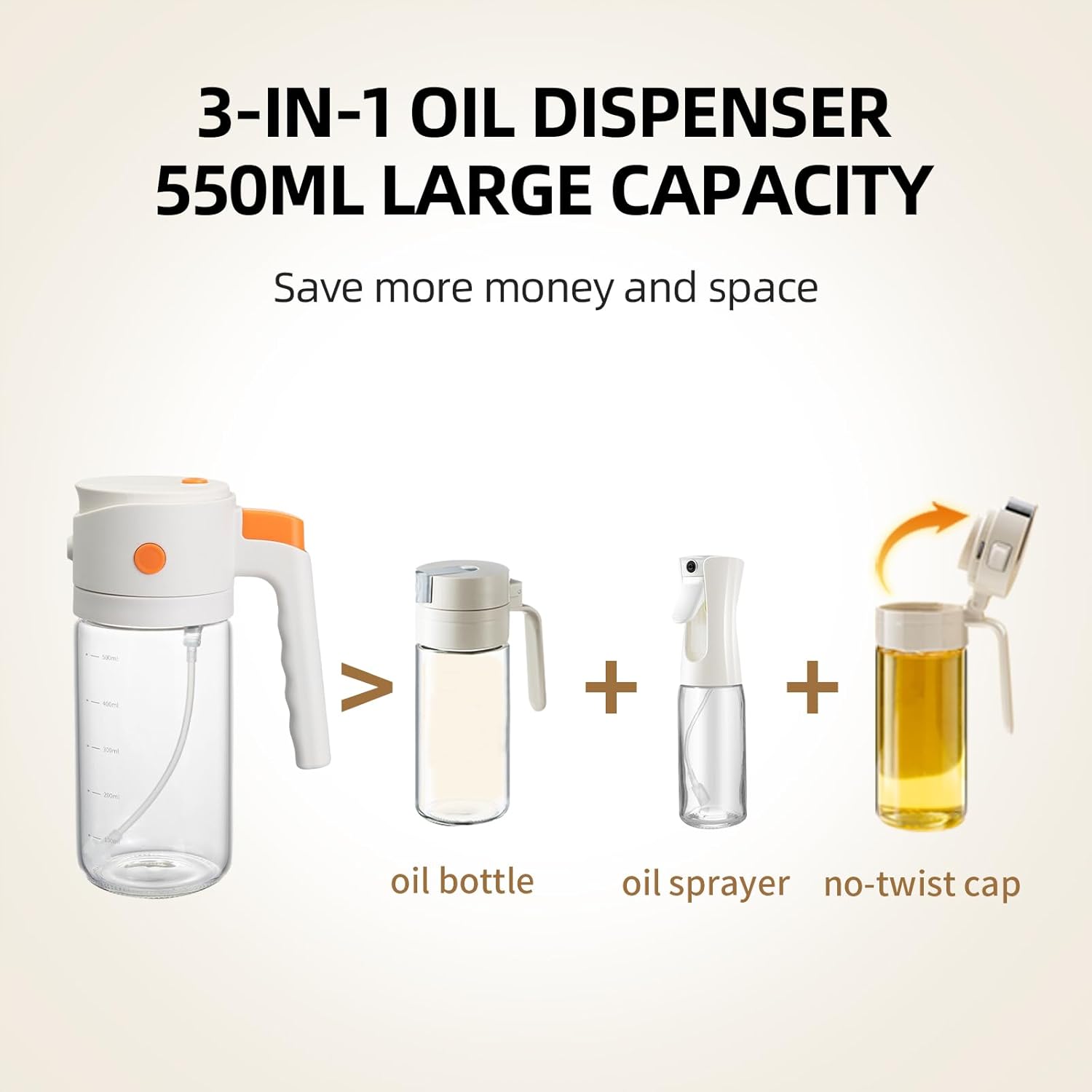 Refillable & Reusable: The large-capacity oil sprayer holds 550ml, reducing the need for frequent refills. Wide mouth design allows for effortless cleaning and refilling