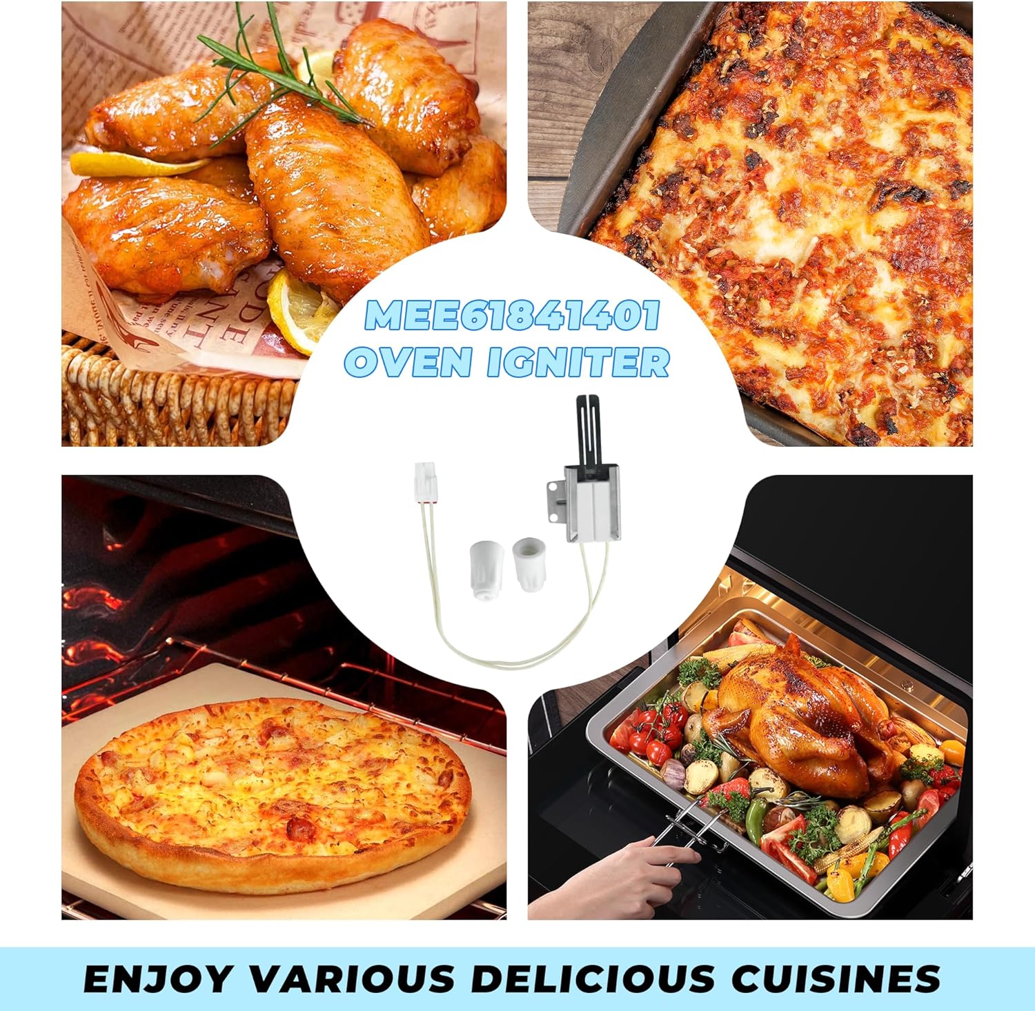 ➽SAFE AND SECURE— The mee61841401 MEE61841403 oven igniter replacement for L-G has been rigorously tested for high heat resistance and performance, ensuring a reliable and safe solution for your appliance needs. Each MEE61841401 MEE61841403 oven igniter replacement fit for L-G has been tested for anti-aging, so please don’t worry when you notice the ignitor is discolored. As this does not affect use. The anti-aging test helps to extend the life of your stove or oven. Ensure a higher heat resistance and a greater power connection. Helping you light oven burner and adjust temperature normally and extend the life of your stove or oven
