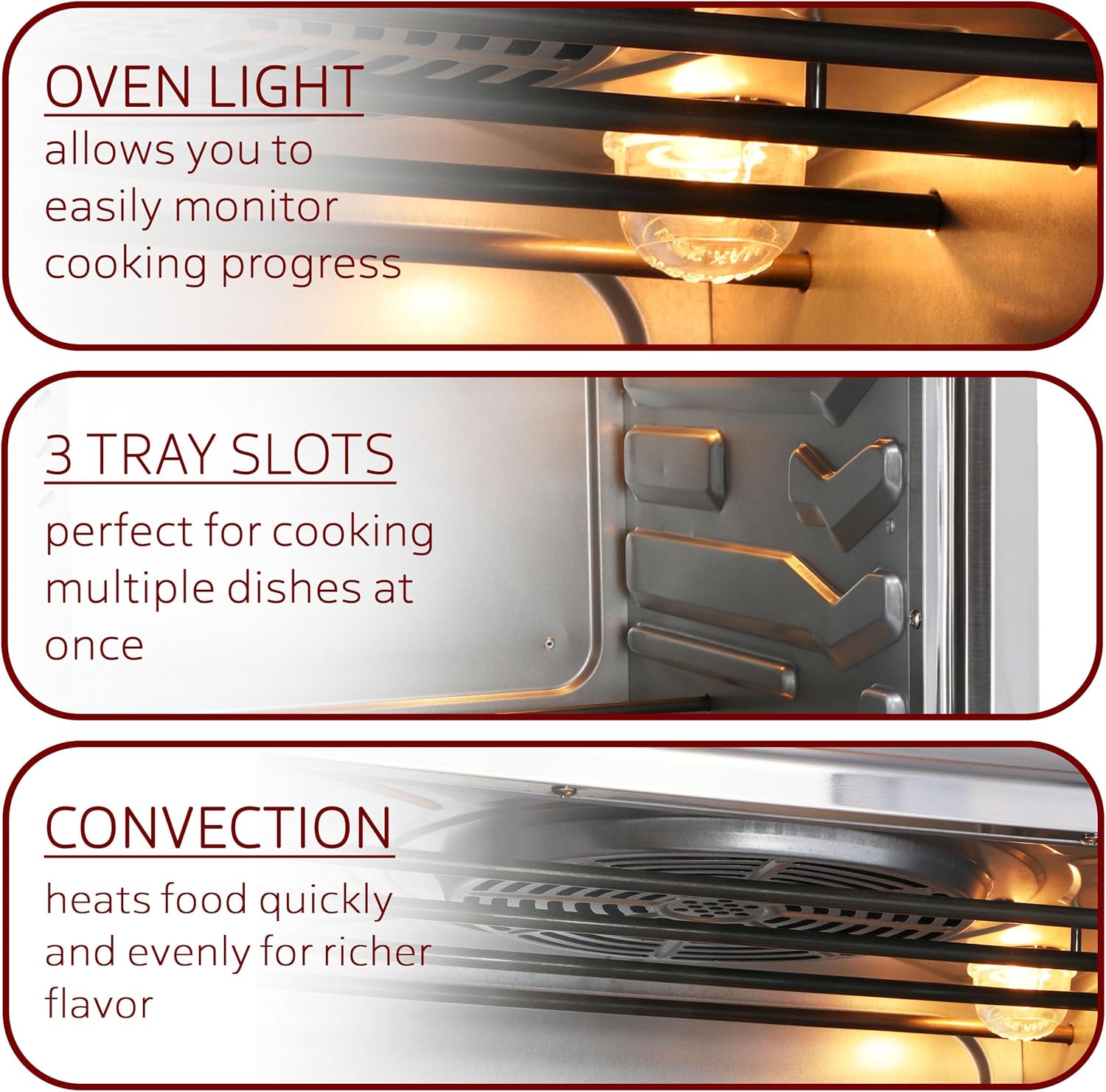 PRECISION COOKING: Adjustable temperature up to 450°F and a 120-minute timer give you total control. Built-in interior oven lamp lets you monitor progress without opening the door.