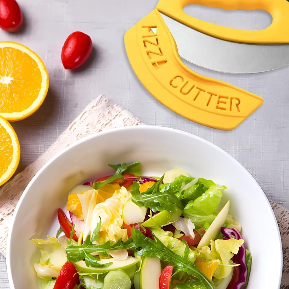 Mezzaluna Mincing Chopper Easy Grip Pizza Cutter and Salad Chopper, Quick Rocking n Chopping Meat, Herbs and Salads,Green