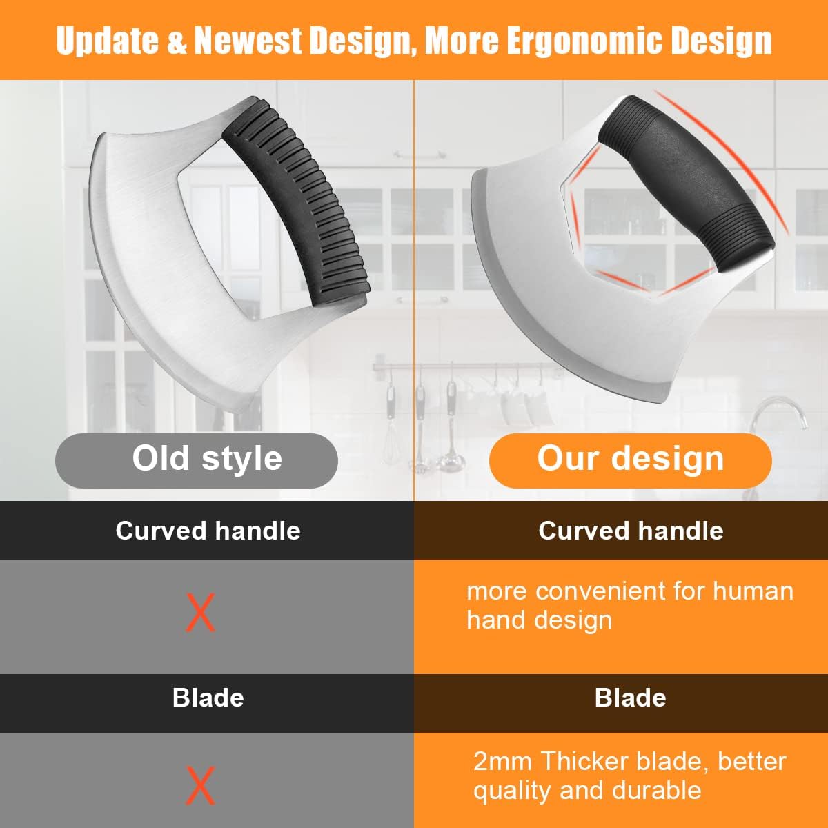【Widely Use】: Mincing Knife could quick and convenient for chopping, suit for chopping various foods, like cheese, onion, carrot, celery, pepper, garlic, ginger, cucumber. Also easy to clean, support hand wash and dishwasher wash.