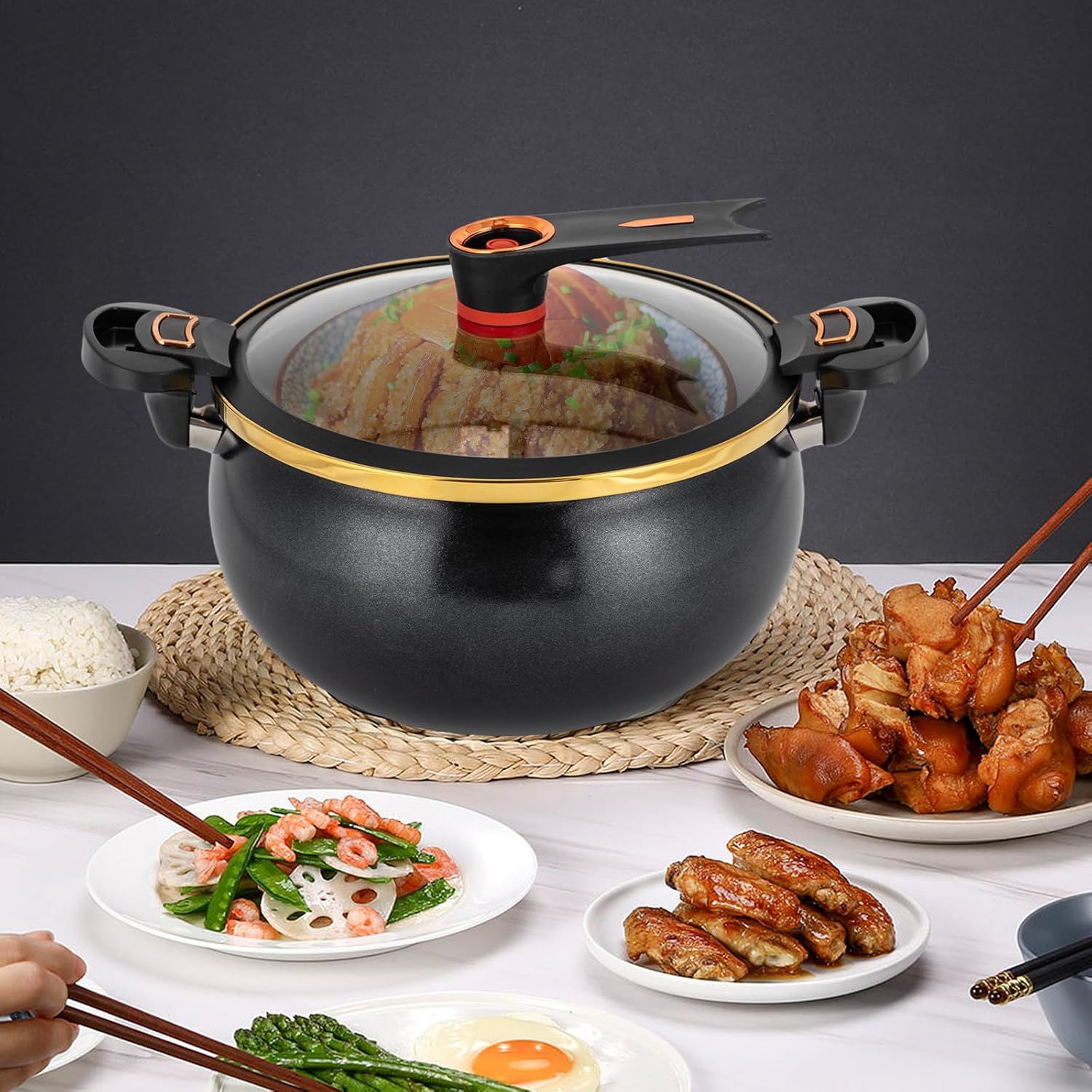 【Cooking Assistant】Higher air pressure and superior sealing than ordinary soup pots allow this micro pressure cooker pot to cook food faster while preserving the original flavor and nutrients of the ingredients. Its flat bottom and iron construction allow it to heat quickly and evenly. Suitable for all stovetops (open flame, induction, electric, and gas), it lets you stew, boil, and stir-fry for healthy, delicious meals.