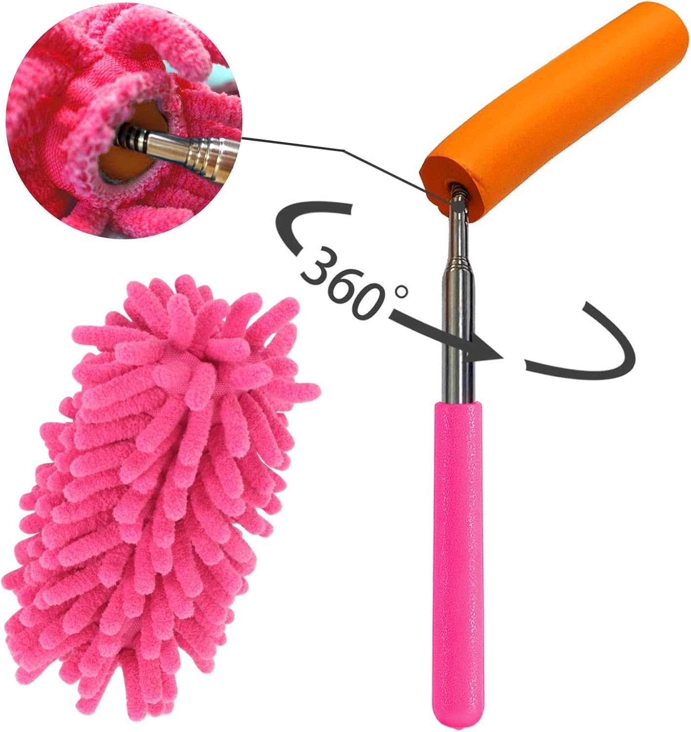 [Package Include : This microfiber hand duster set includes 2 retractable brushes. Rose red 2pack.