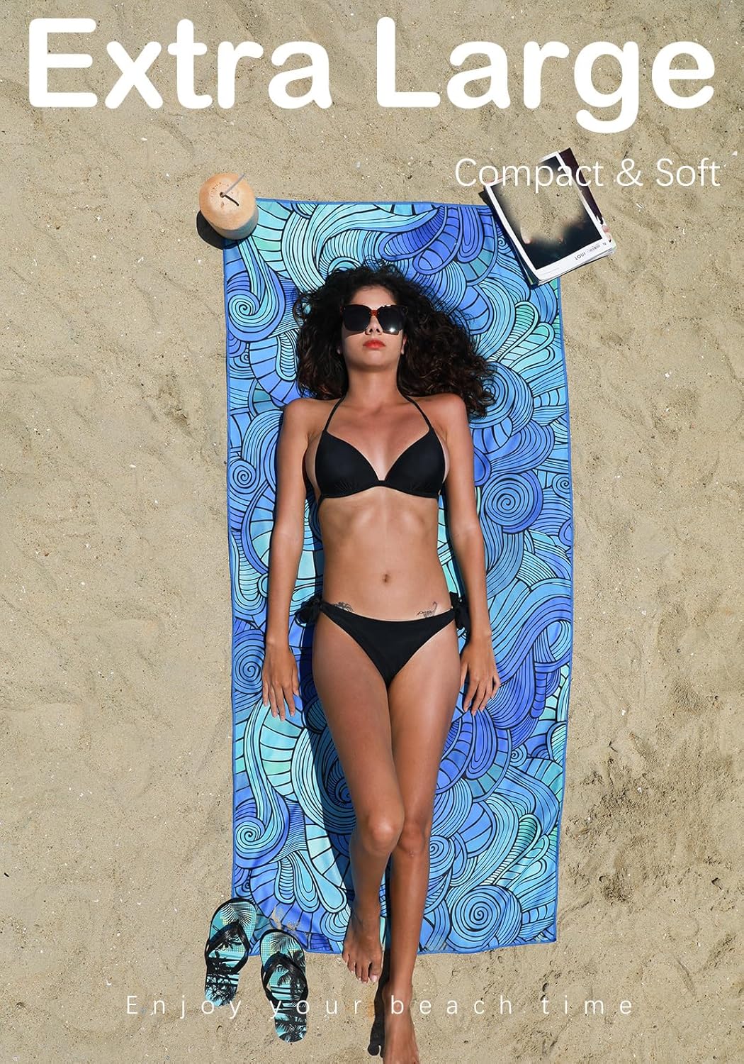 SAND FREE AND EXTRA LARGE: The microfiber beach towels are designed to repel sand, making them the ideal choice for a day at the beach. They are generously sized to provide ample coverage and prevent sand from getting on your skin or clothes, ensuring a comfortable and enjoyable experience
