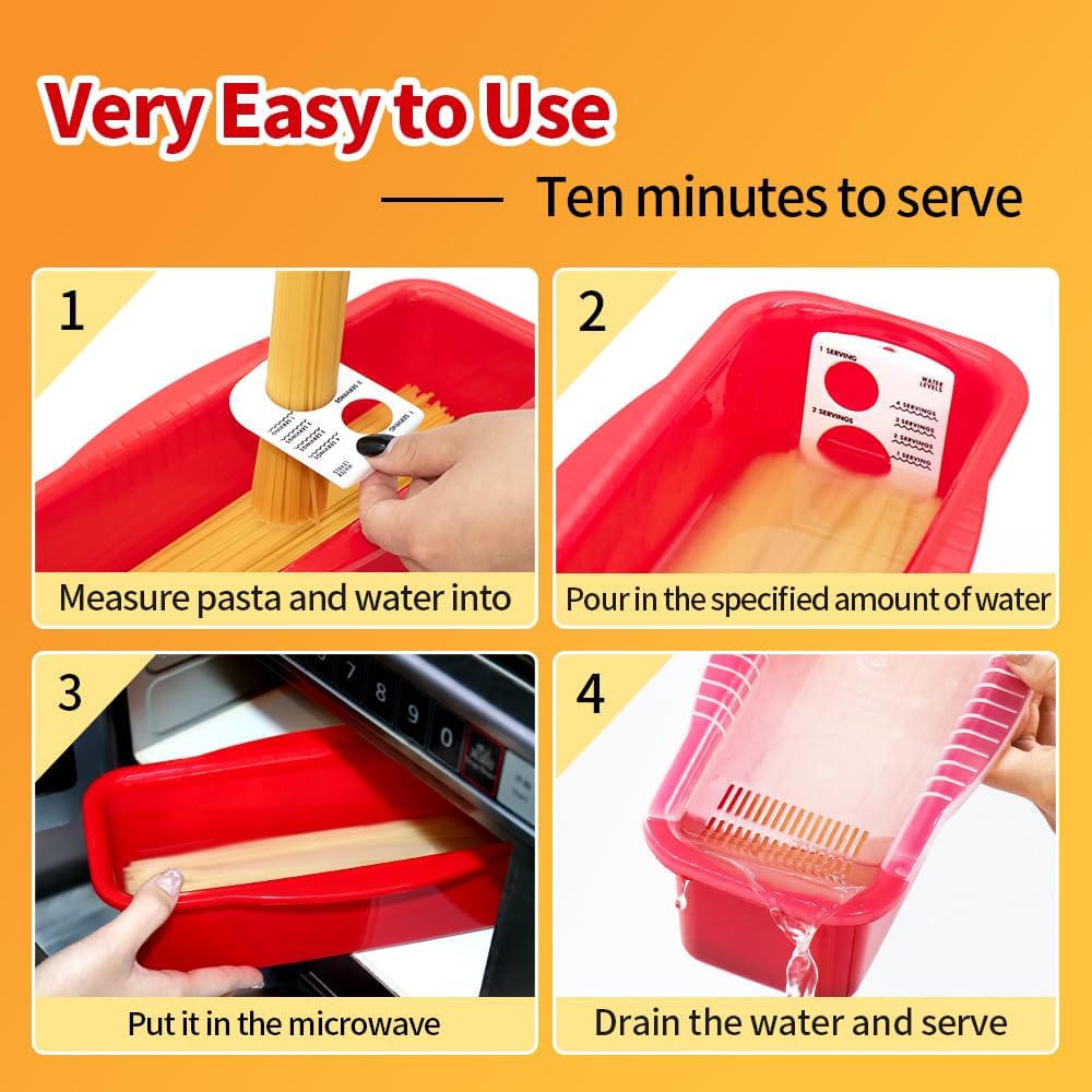 【A 10-minute meal prep solution for busy lifestyles】The Microwave Pasta Pot revolutionizes meal prep with a microwave-ready design that cooks pasta in 10-15 minutes – perfect for lunch breaks, late-night hunger, or kids’ snacks. The included measurement card ensures the perfect water-to-pasta ratio every time, taking the guesswork out of dormitory dwellers and RV travelers.