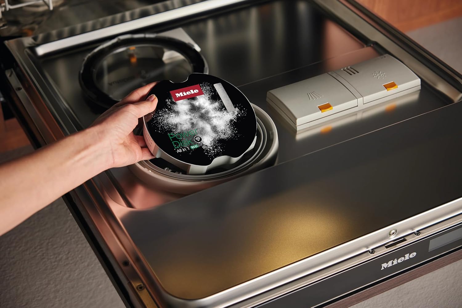 Miele PowerDisk: Created for dishwashers with AutoDos, this PowerDisk is a powerful detergent that is determined to bring the shine back to your dishes