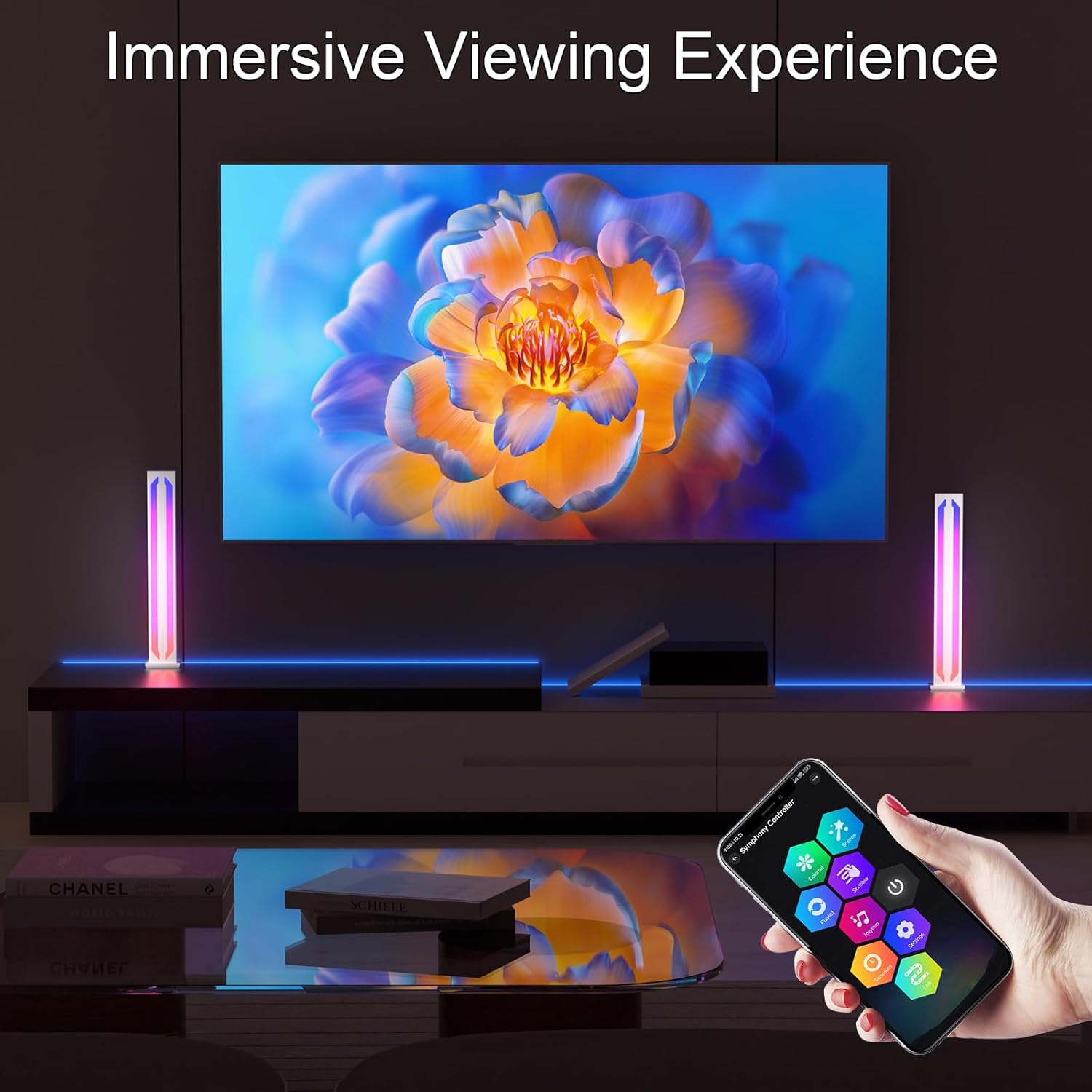 Immersive Mood Lighting: The Smart Light Bars unlock a new home theater entertainment experience that easily with your PC、TV and Laptop with 16 million colors, 27 preset scenes, and multi-modes to enhance your movie and game experience, or turn your room into a living visualizer for your music