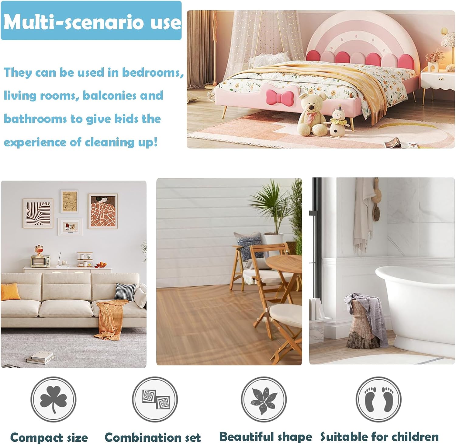 Simple Installation and Sace Saving: Small broom and dustpan,Suitable for children join into housework, also it can be used for cleaning pet nest,work desk,office, corner seam, etc..You need to assemble it on your own before using it. The assembly is very simple, This broom handle has a hanging hole at the top, the dustpan can be hung up without taking up space, or can be put away and placed upright on the floor, because of the small size, so it will not take up space, when not in use, the broom dustpan can be folded together to save a lot of space.