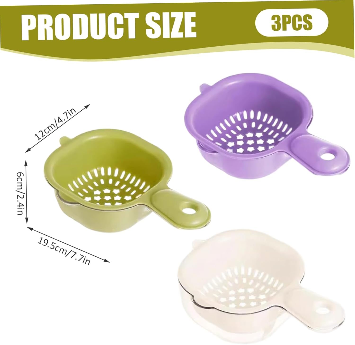 Mini Colander, Kitchen Dual-Layer Draining Basket with Handle 3Pcs Cute Small Colander Fruit Strainer Multi-functional Vegetable Washing Basket for Home Kitchen, Small