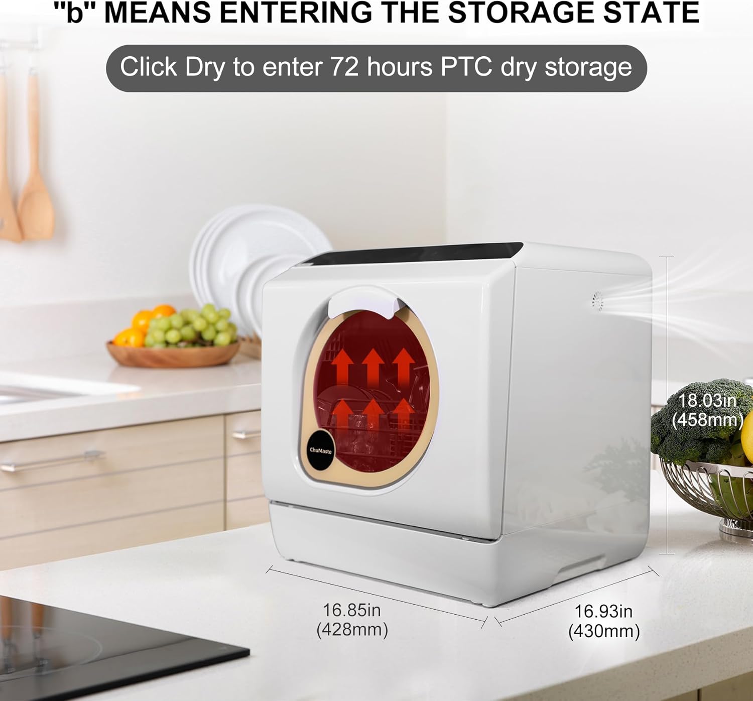 Fastest wash time Ultra-fast mode only takes 29 minutesThe ChuMaste dishwasher uses a 360 degree spiral high-pressure spray arm, and there is no dead space for the upper and lower double spray cleaning dishes. The washed dishes are as clean as new. portable dishwasher countertopportable dishwasher countertop