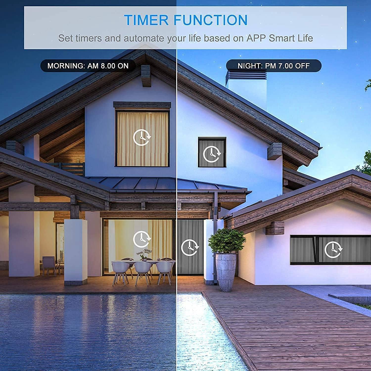 Anywhere application control: Even if you are not , you can remotely control lights, routers, fans, televisions, coffee makers or any other devices 10A/1100W by clicking on the mobile application Smart Life. No hub is required. It is compatible with most wifi routers (only compatible with 2.4GHz wireless networks). It allows you to DIY many smart projects: smart lights, fans, garage doors, humidifiers, thermostats, etc.