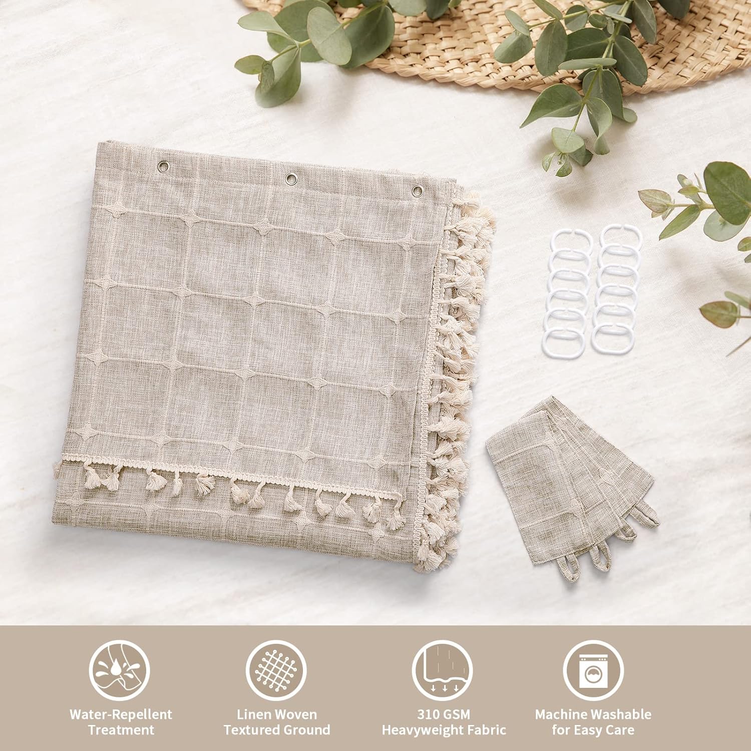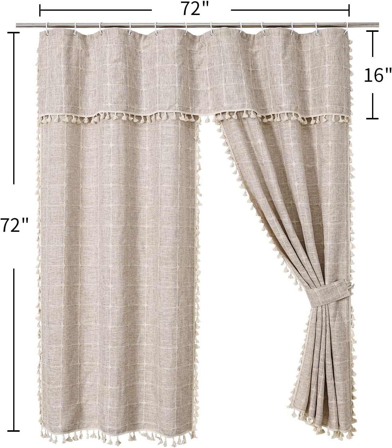 Double Swag Design – The rustic farmhouse shower curtain is elegant looking and adds a special country style to the bathroom. Simple geometric pattern and boho tassel elements is also very eye pleasing, which is suitable for master bathroom, guest bathroom.