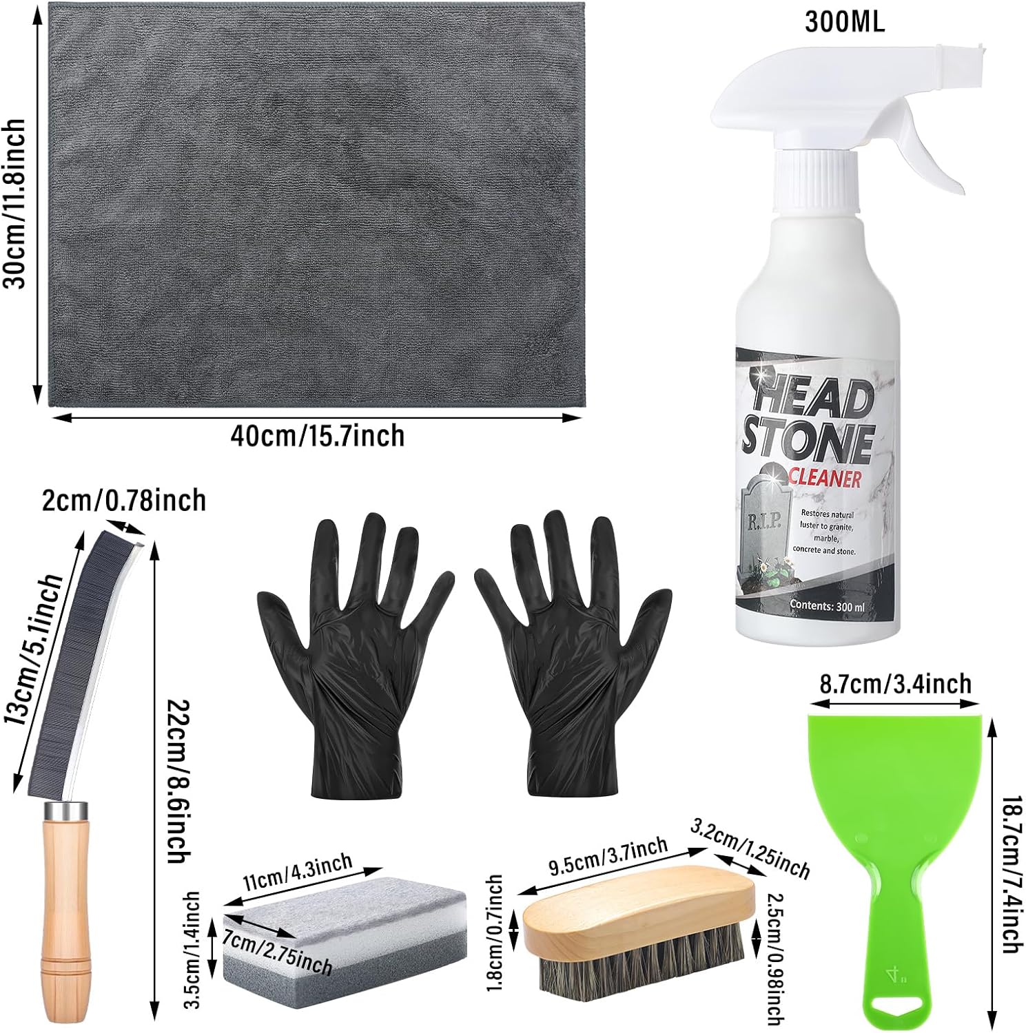 Package Include: our tombstone cleaning kit comes with everything you need to keep your tombstone in pristine condition; Includes 1 bottle of tombstone cleaning solution, 1 gray microfiber cloth, 1 stiff-bristle crevice cleaning brush for deep cleaning crevices, 1 brush, 2 pairs of black disposable gloves, 1 tombstone cleaning sponge, This efficient headstone cleaner kit for grave makes it easy to remove dirt and dust from corners