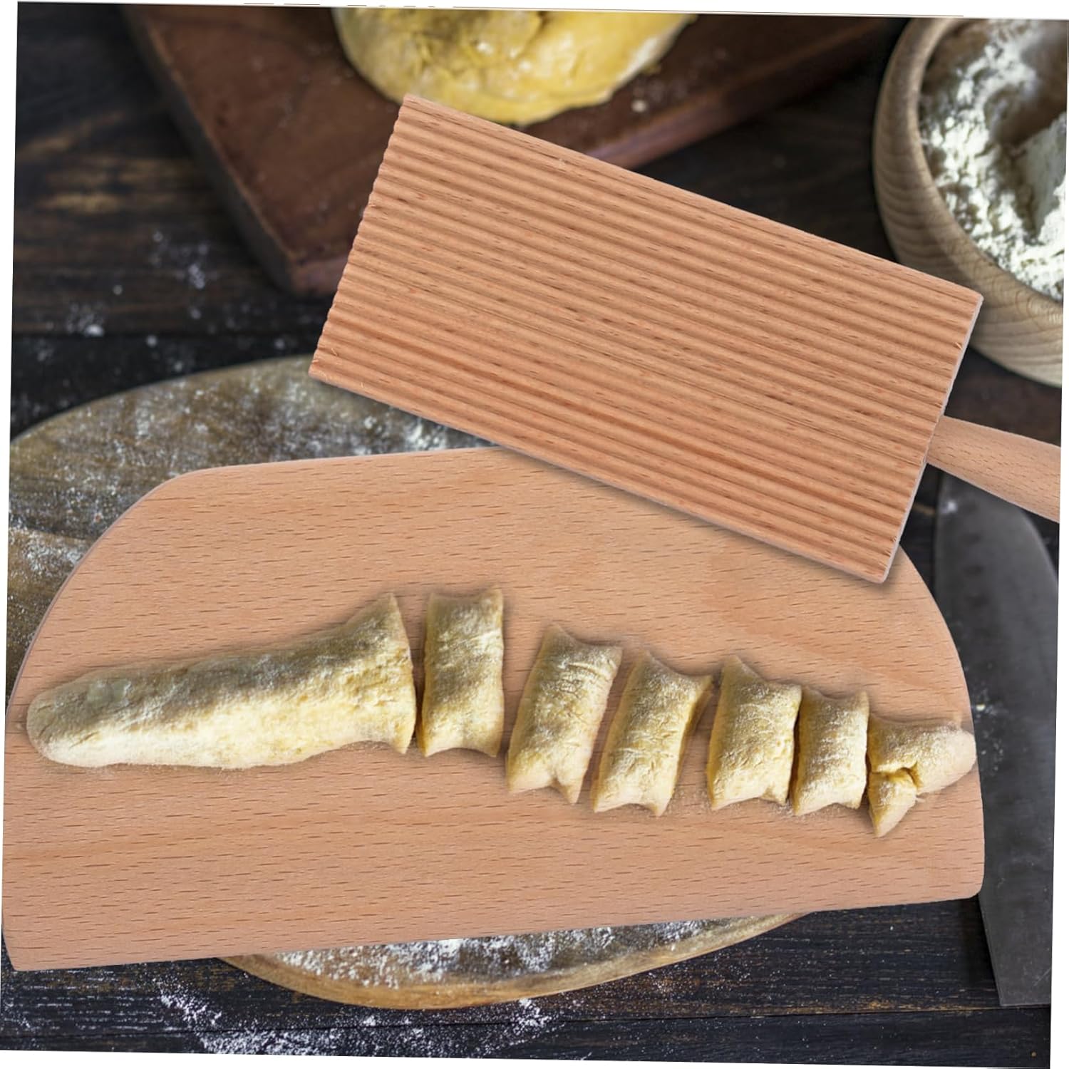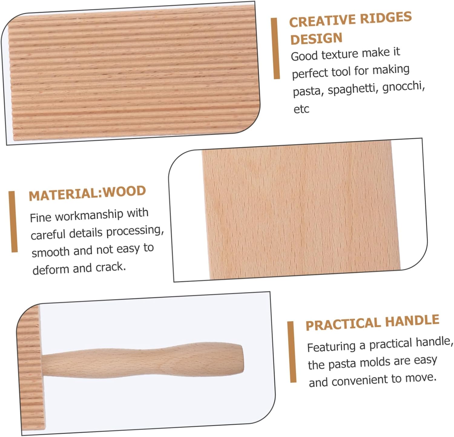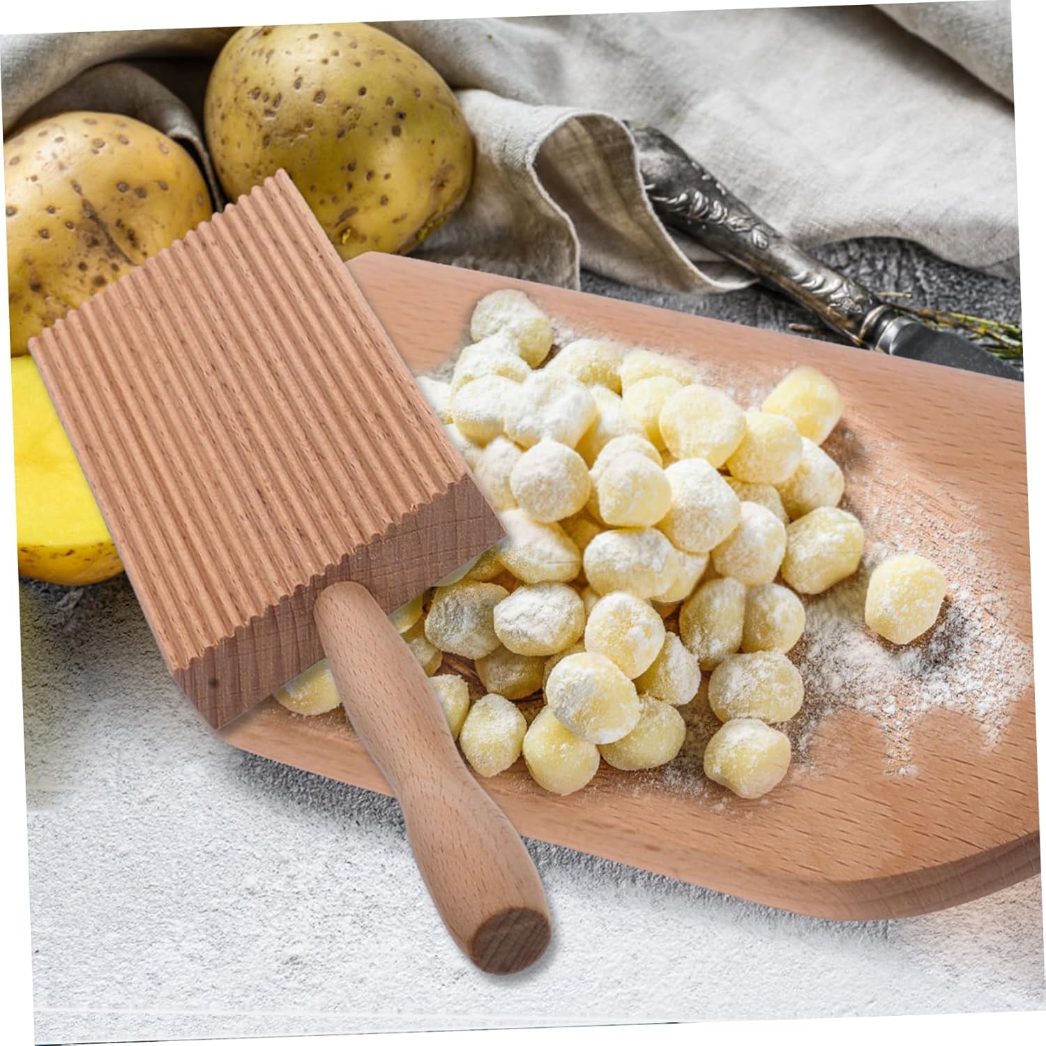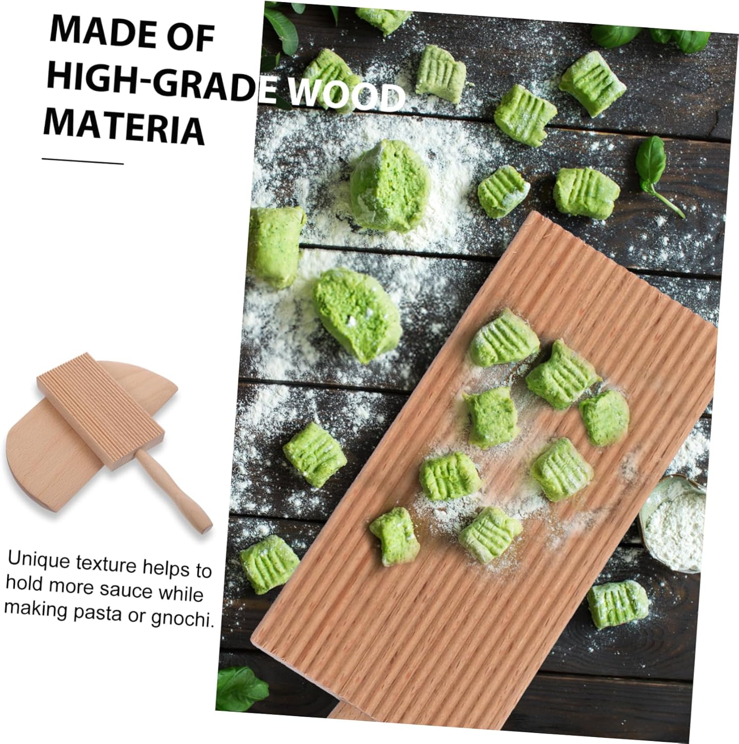 wear-resistant pasta maker help shape pasta and add texture which will hold more sauce, works nicely as a cavatelli maker, too.butter This is a gnocchi board, which is made of high-class materials, and can be used for a long time.gnocchi board With an handle to help maintain the angle and keep the board steady