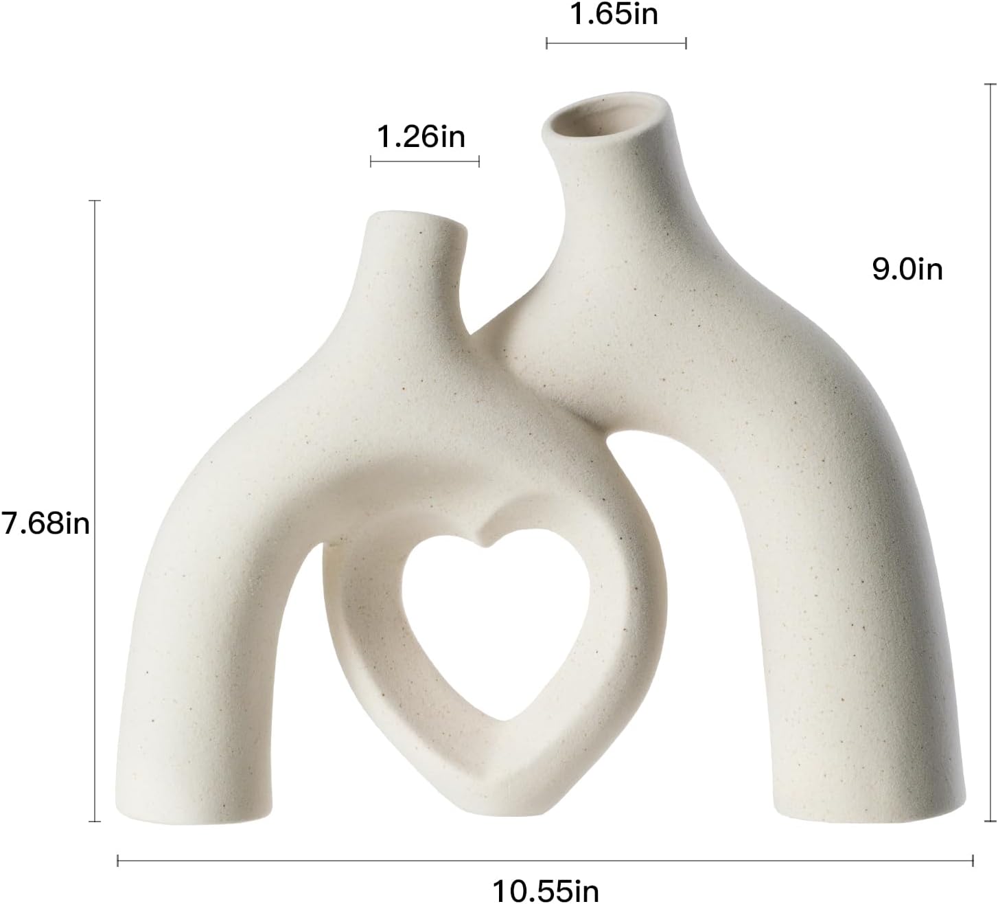 🏘️DESIGN: This handmade vase features a unique design, incorporating many popular elements of simple modern vases—such as snuggling vases, Round Donut vases, Heart Shaped vases, radish vases, etc.—depicting two couples snuggling together. The hollow heart – shaped design in the middle makes it not only a vase but also a work of art.
