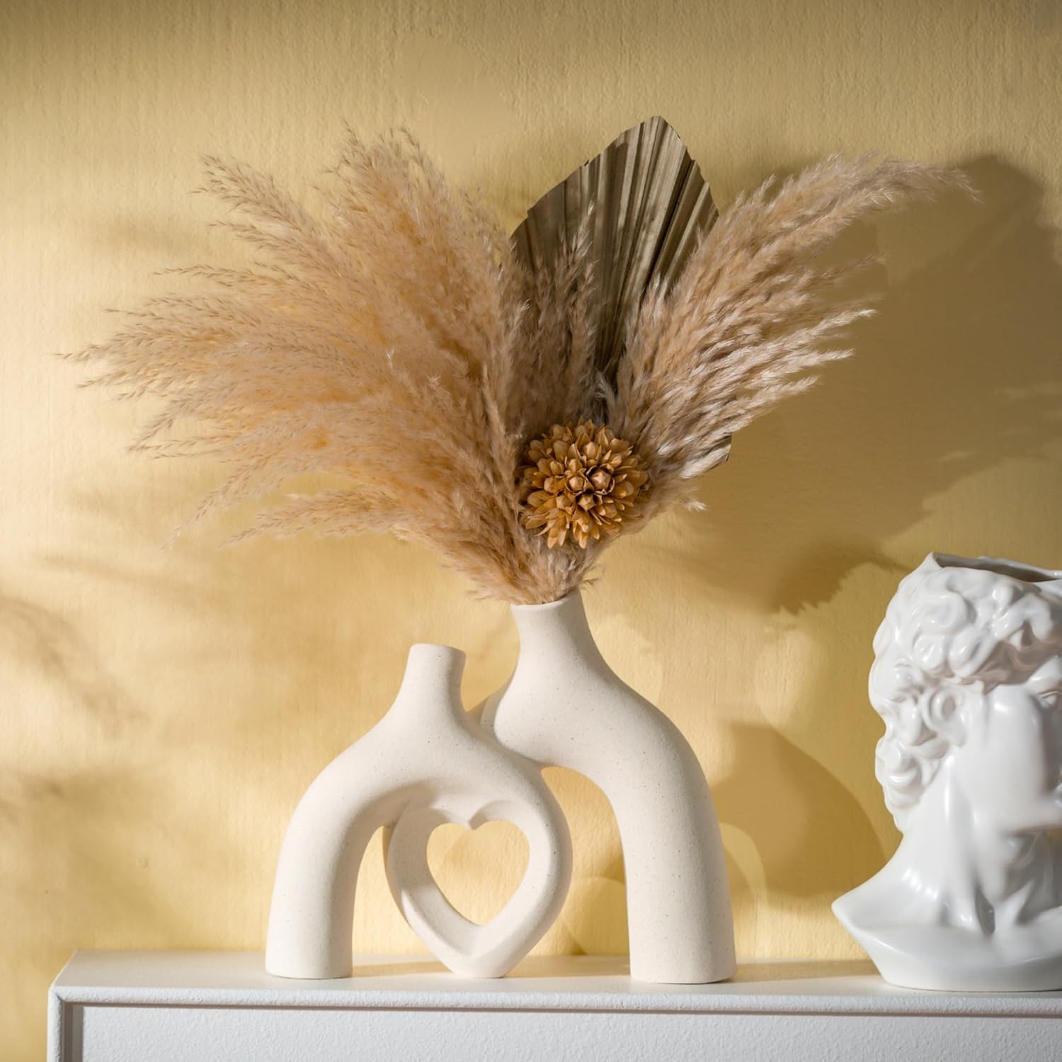 Snuggle Hollow Ceramic Vase Set of 2, Nordic Modern Boho ins Style Decorative Ceramic Aesthetic Flower Vase for Home Decor, Hug Donut Decorative Vase Set – Matte Ceramic Decorations for Living Room Shelf, Bookshelf Mantle Entryway Table or Console Décor