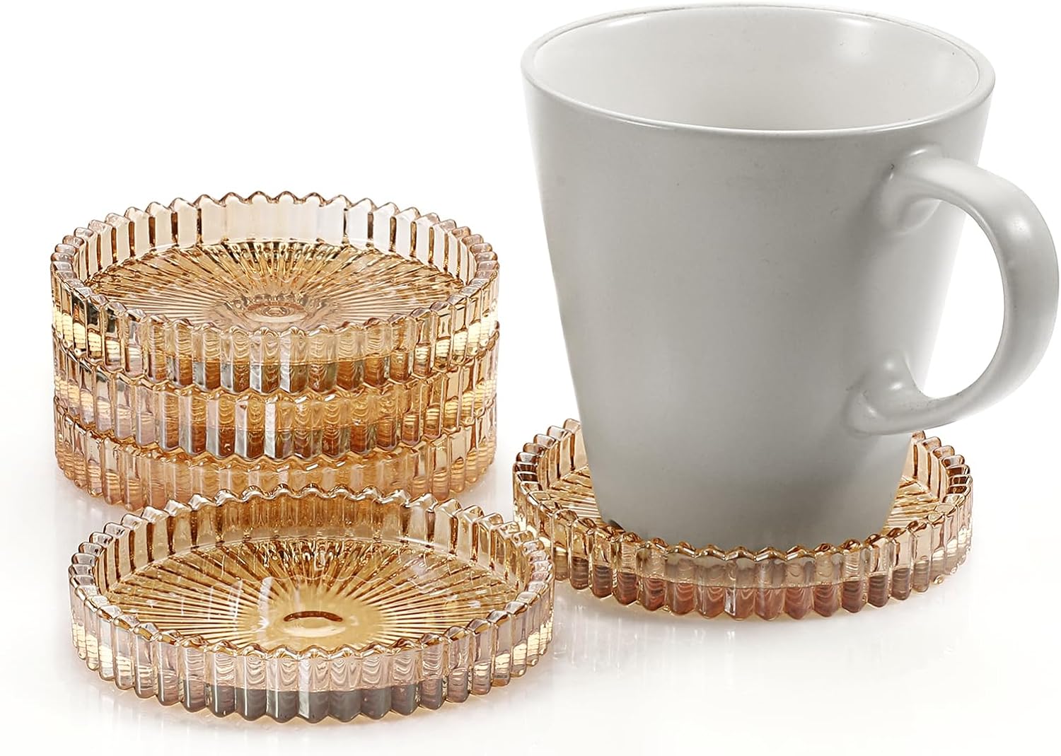 Unique and Elegant Look-Unlike other coasters for drinks, our glass coasters are not just flat coasters; they have a raised edge. Each glass drink coasters is built with reliable quality and has a elegant stripe pattern, can match any furniture or home interior.