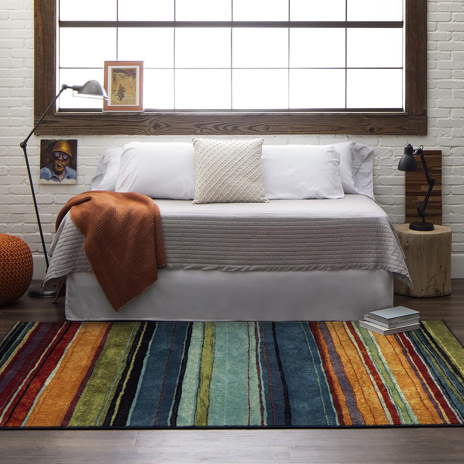 Rich saturated shades of bold color adorn the Mohawk Home Rainbow Area Rug. Showcasing modern brushstroke inspired stripes, the pattern of this contemporary area rug will instantly invigorate your space to create a look that is truly all your own. Flawlessly finished, this area rug features richly defined details and the dependable durability needed for busy spaces. The dense pile is created with premium synthetic yarn that offers superior stain resistance power and the non-slip latex backing provides precise placement on hard surface flooring during daily wear and tear. A smart choice for high-traffic areas and households with kids and pets. Available in scatters, runners, and popular sizes such as 5×8 and 8×10, this collection is ideal for adding style to a variety of spaces in your home such as the living room, dining room, bedroom, office, hallways, entryways, and more. Add extra plush cushioned comfort to your area rug and protect the flooring underneath by pairing it with a rug pad by Mohawk Home, made of durable felt fibers and certified Green Label Plus by The Carpet & Rug Institute.