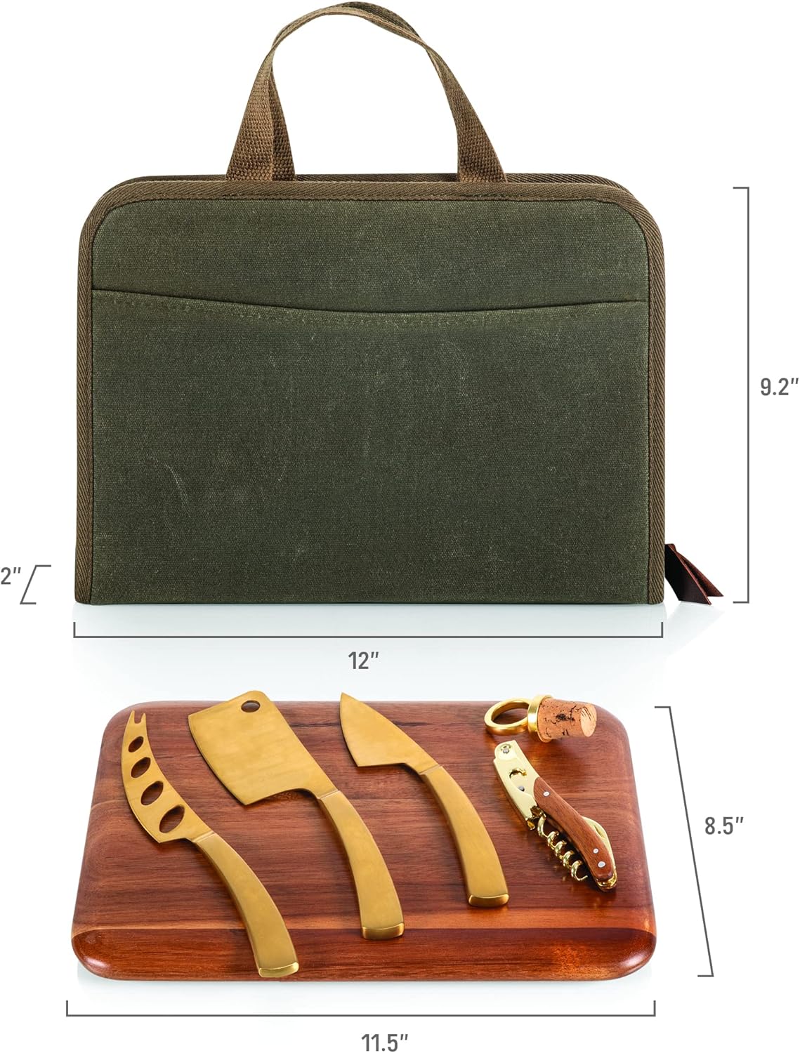 IT’S ALL IN THE DETAILS – Waxed Canvas case with cotton webbing handles for easy storage and transportation and a large front pocket to store napkins, toothpicks, condiments, and all other cheese board necessities;