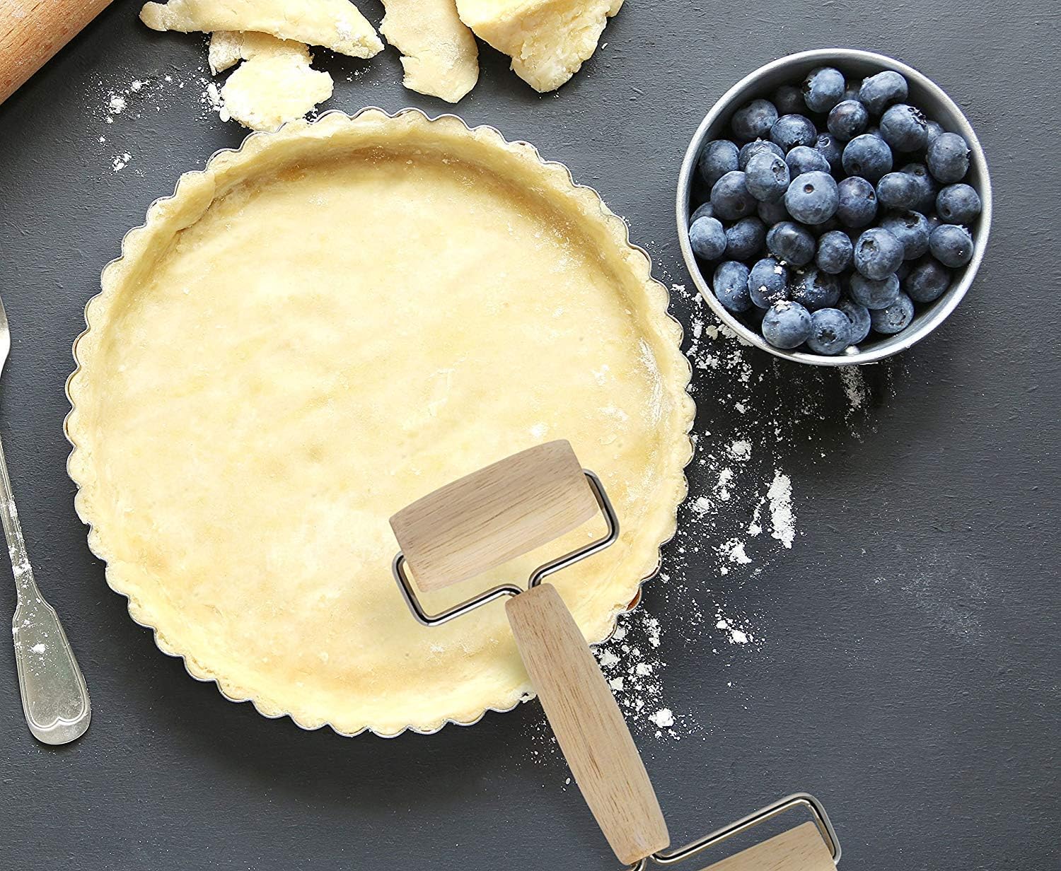 Mrs. Anderson’s Double Dough Roller easily rolls out dough right in the pan with a uniform thickness and smooth edges for amazing baking results