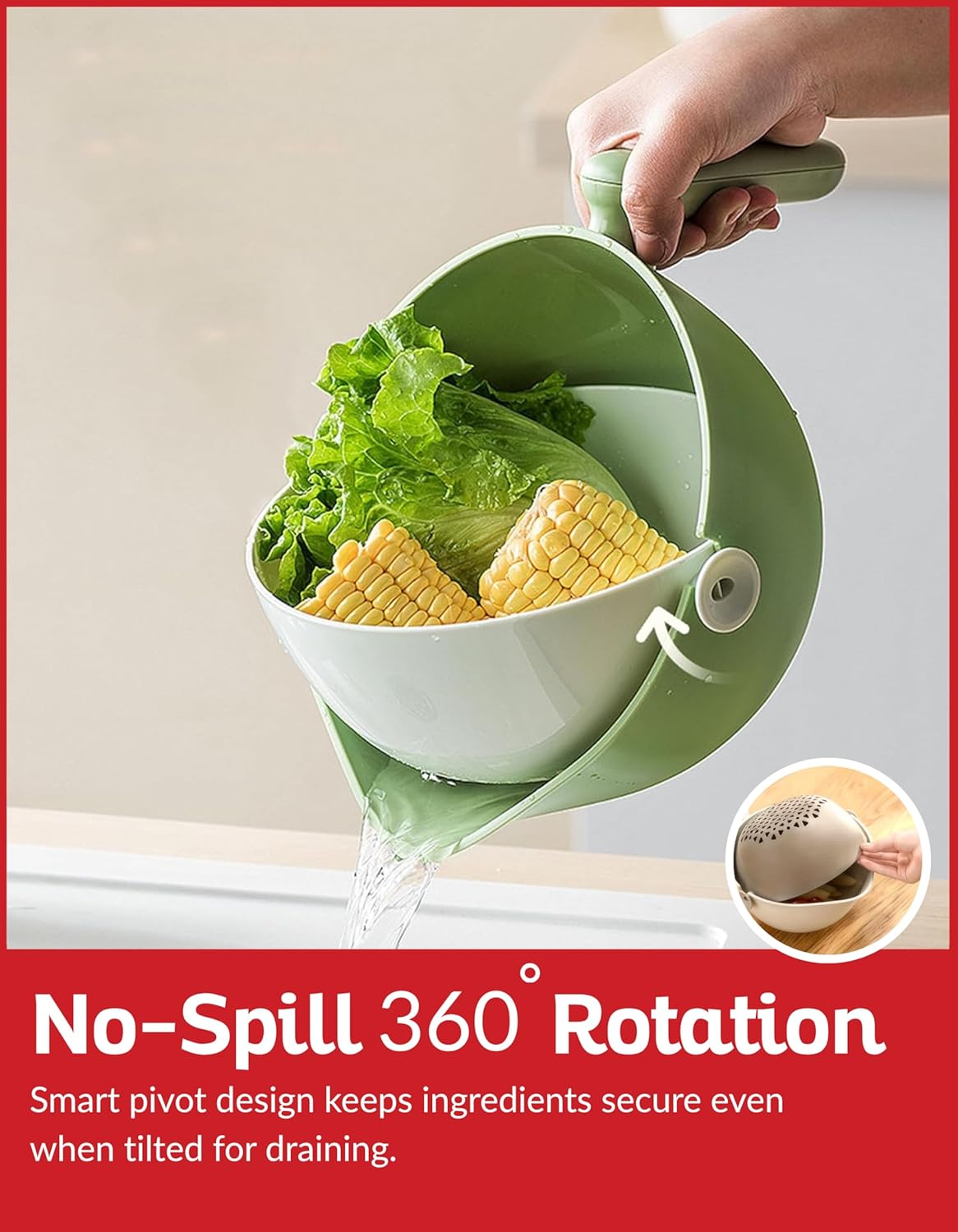 Ergonomic & Easy to Use – Designed for comfort, the ergonomic draining basket features anti-slip handles and smooth edges for safe handling. Its ventilated inner colander drains quickly, preventing clogging or overflow, making it perfect for washing salad greens, straining pasta.