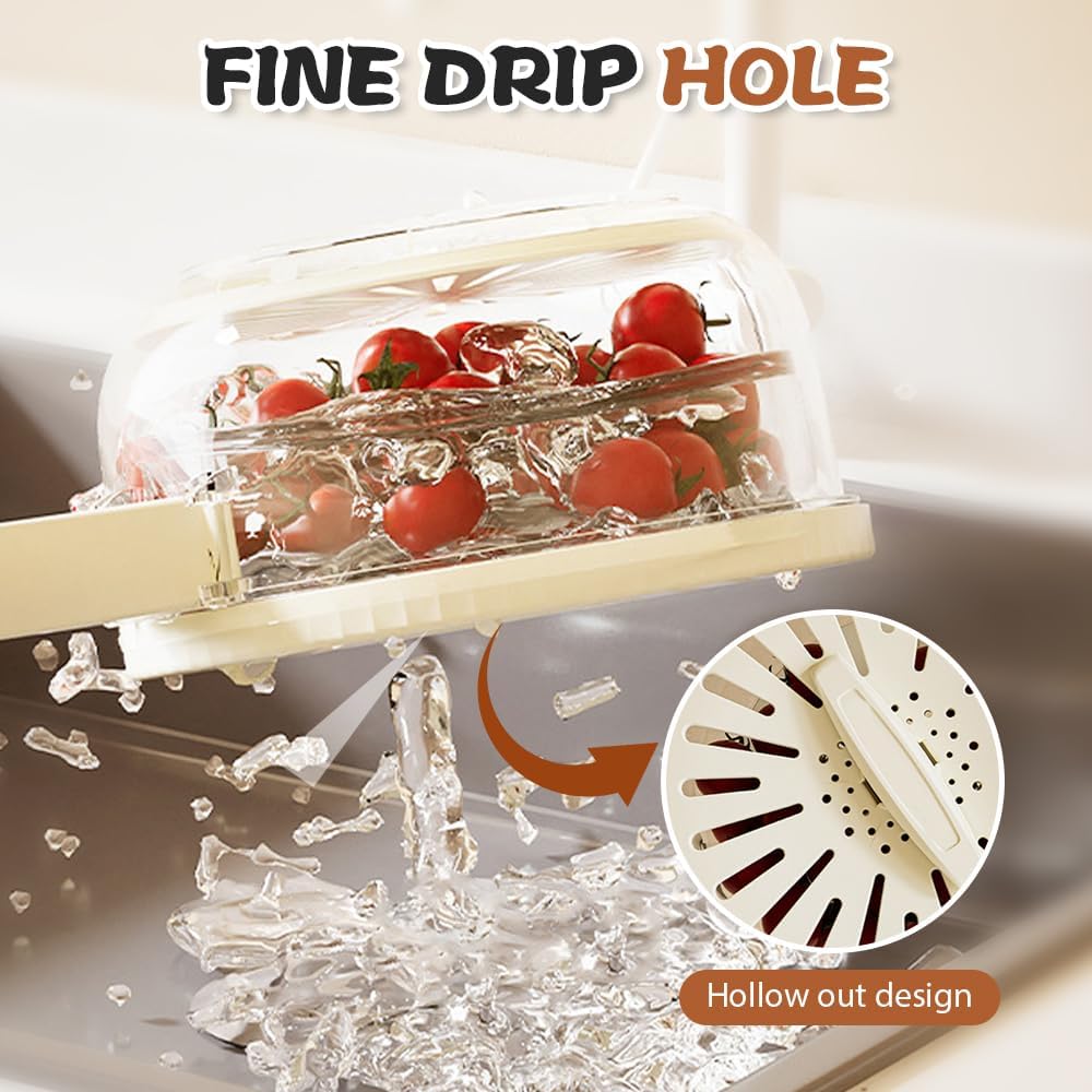 【360° Sealing Buckle】The watermelon bowl with strainer and lid is equipped with a secure sealing mechanism, keeping your fruits fresh while allowing for effective draining, which enhances your overall cooking experience with the multipurpose drain basket.