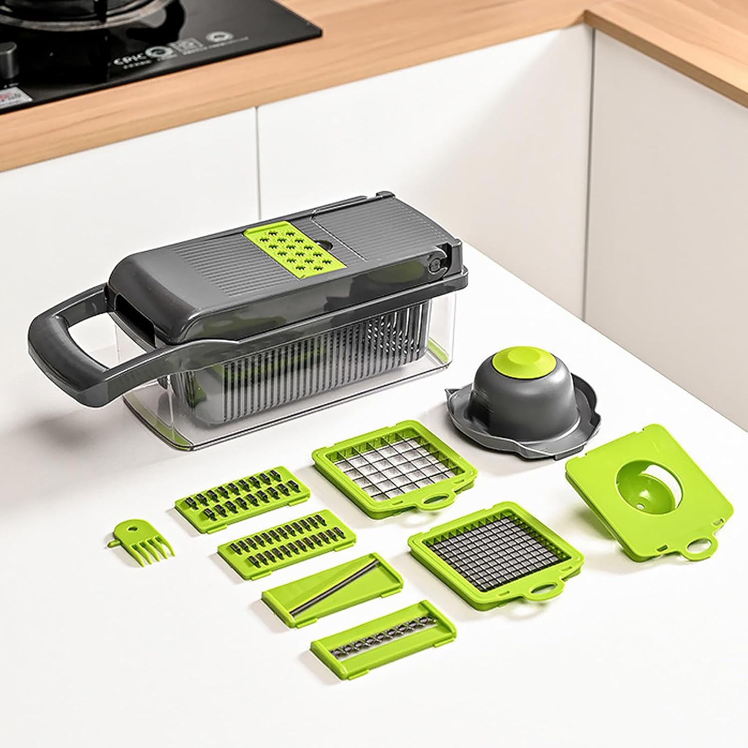 ULTIMATE CONVENIENCE & EFFICIENCY – This multifunctional vegetable chopper is an efficient assistant in the kitchen, equipped with multiple types of knives and choppers, able to easily switch between slicing, dicing, shredding and more. Whether you’re preparing salads, stir-frying or baking, it significantly reduces ingredient prep time, allowing you to be more comfortable in the kitchen and enjoy cooking efficiency like never before.