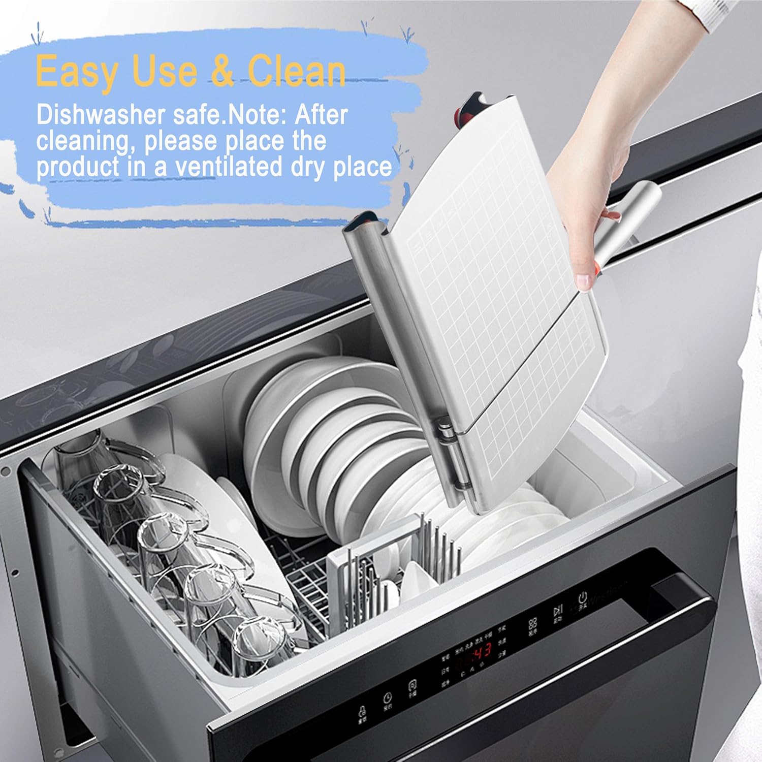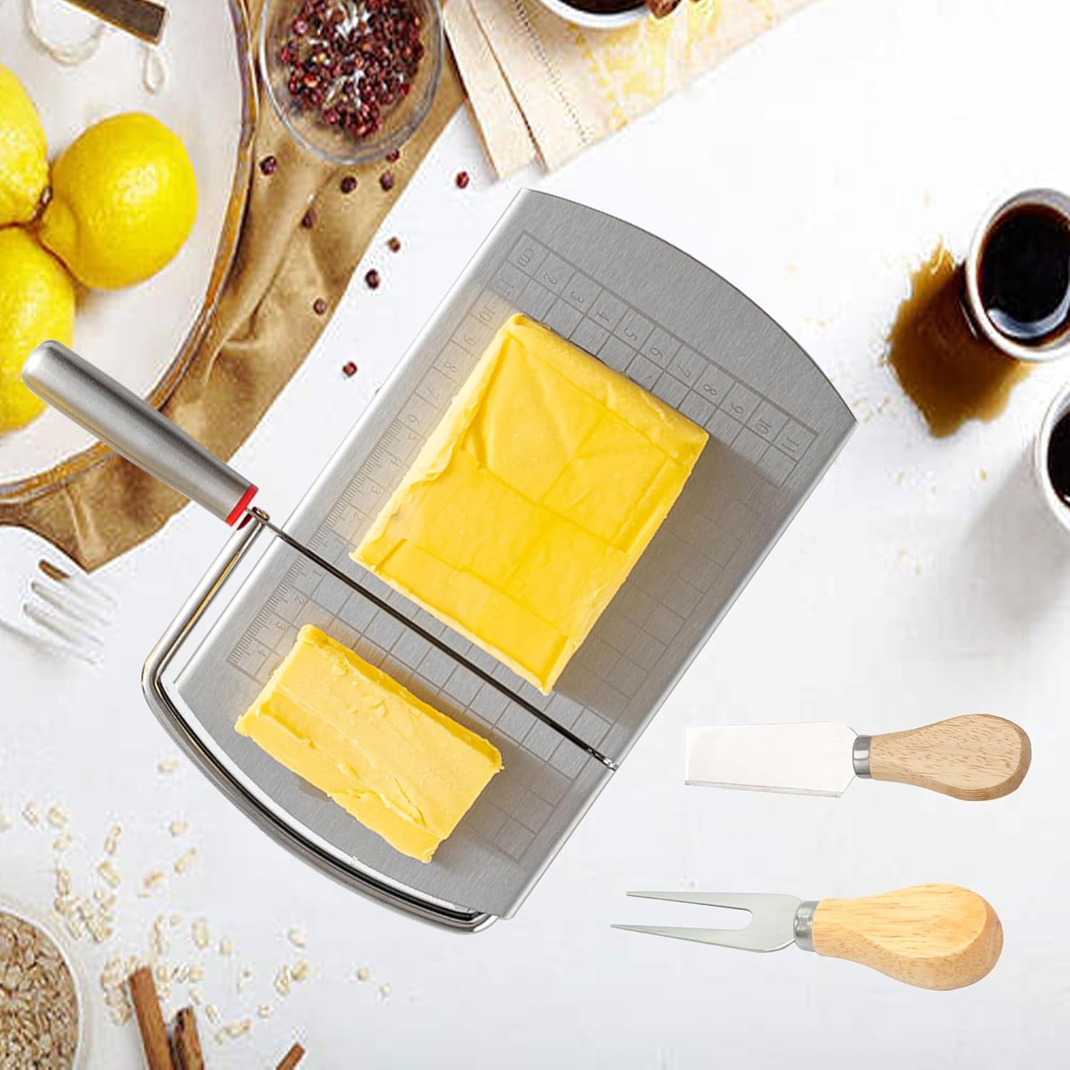 New Upgraded: The blade cheese slicer is upgraded from the cheese slicer wires, so there is no fear of breaking the cables and eliminating the hassle of replacing and installing the wires, which also saves you time and money.Clear and Precise Grid Scale Lines: The blade cheese slice are drawn by laser on the surface of the plate, which helps you to cut exactly according to the size you want from 1mm to cm, get rid of the guesswork about that the slice is too large or too small.Easy to Cut: The cheese slicer set are easy-to-cut soft cheese slices, butter, ham, or soft vegetables like cucumbers, onions and fruits.Easy to Clean: This cheese slicer cutter can be put in the dishwasher or washed with water, it can also be wiped down directly with kitchen paper towels. Please ensure the cheese slicer is dry before each use and storage.
