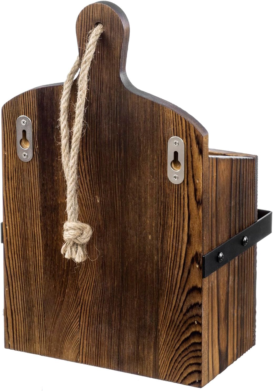 Multi-Functional – Combines utensil storage with a convenient towel bar.Rustic Solid Wood – Durable wood with a natural farmhouse finish.Wall-Mounted Design – Saves counter space and keeps essentials accessible.Organized & Practical – Perfect for kitchens, dining areas, or coffee bars.Approximate Dimensions: Overall – 8.0 L x 5.7 W x 13.0 H; Each Compartment – 3.2 L x 3.5 W x 6.1 H (in inches)