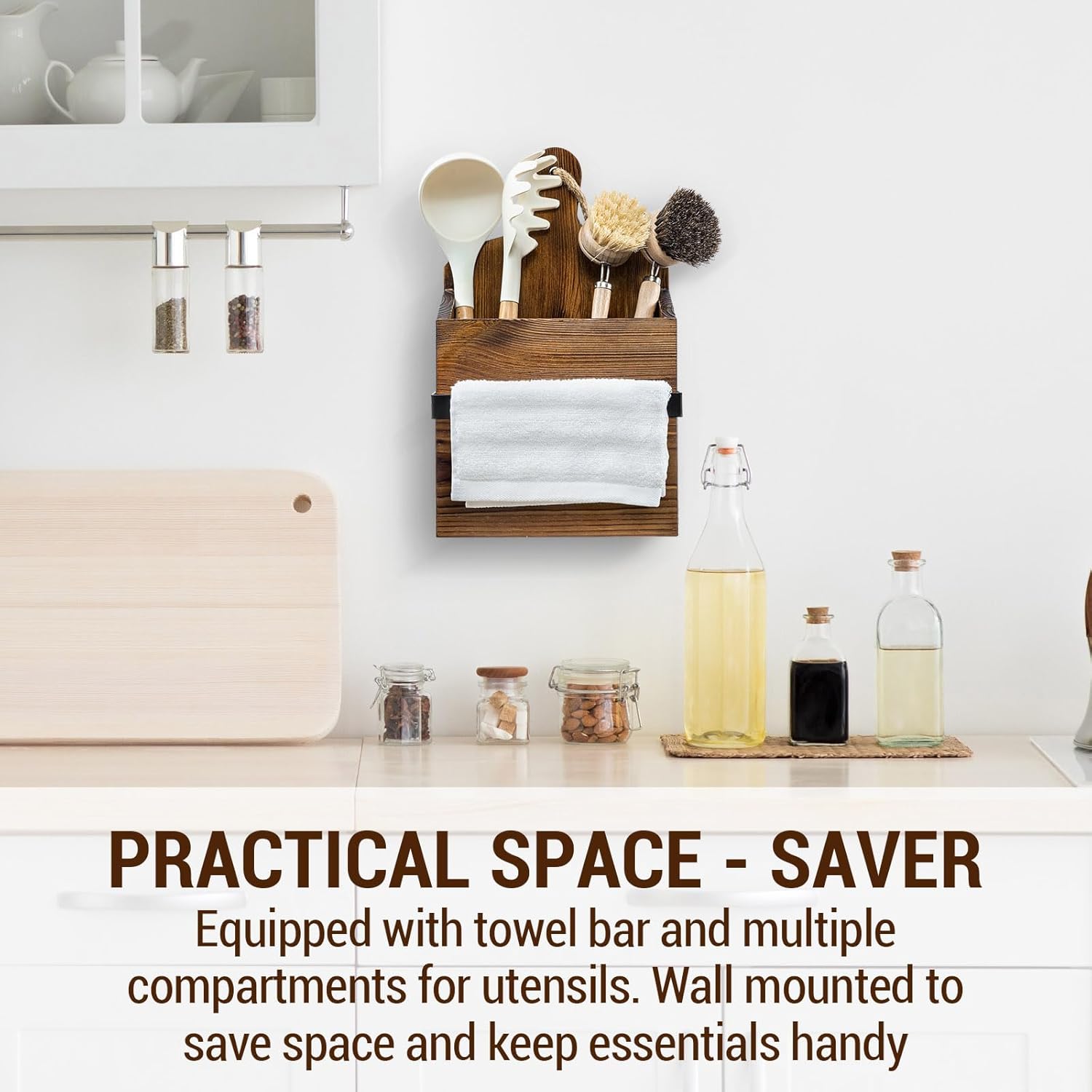 Rustic Wall Mounted Solid Wood Utensil Holder with Towel Bar near kitchen sink on counterRustic Wall Mounted Solid Wood Utensil Holder with Towel Bar near kitchen sink on counter