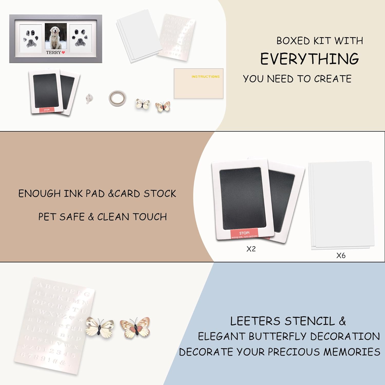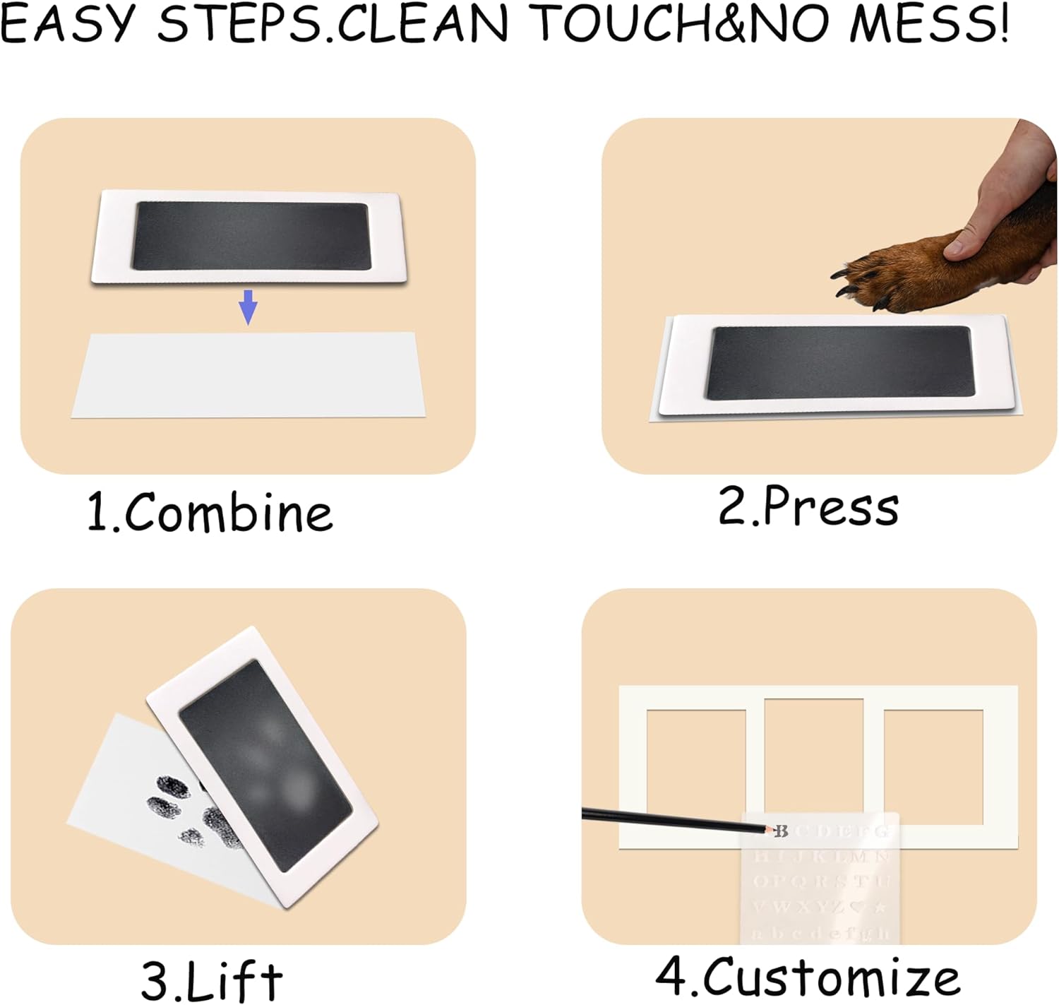 【Perfect Kit to Honor Your Beloved Pet】Our paw print kit combine photo frame and ink pad for dog paw prints. And it comes with a letter/number stencil so you can personalize your pet’s name.It keep a special place for them displayed for you to look back on with tender fondness.
