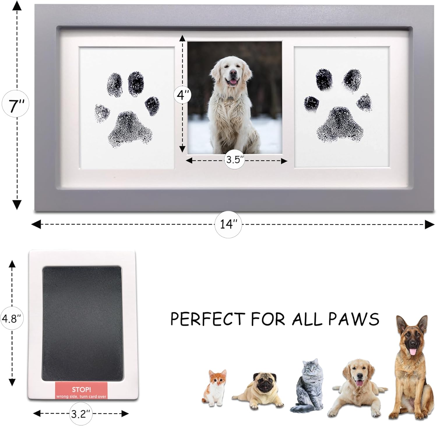 【Gifts for Dogs or Cats lover】A picture frame and paw print in one! This dog ink paw print kit also can be customizable too! Pet lovers of all kinds will love this thoughtful gift or sympathy memorial. Or get one for yourself to honor your beloved Pet. Comes in a gift box with clear and easy instructions.