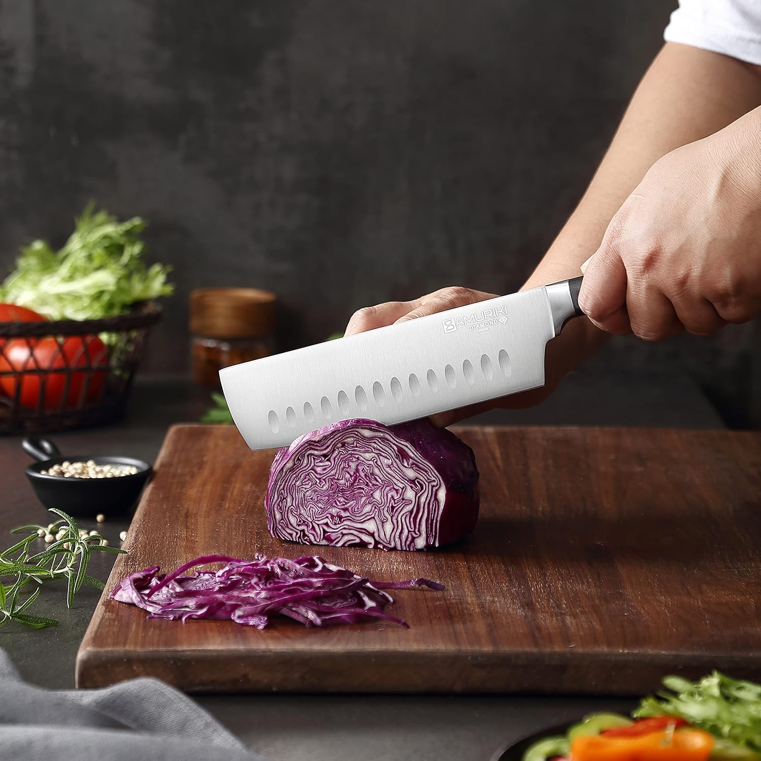 KNIFE OBSESSION – No, we don’t make pans, pots, spatulas or the likes. We only make knives and we’re obsessed with making knives. It’s all we think about all day every day. For this Nakiri knife, along with a beautiful Pakkawood handle, what we achieved was a knife that is comfortable to hold, easy to control, razor sharp and cut effortlessly. It is perfect for slicing and dicing cabbage, eggplant, onions, carrots, etc.